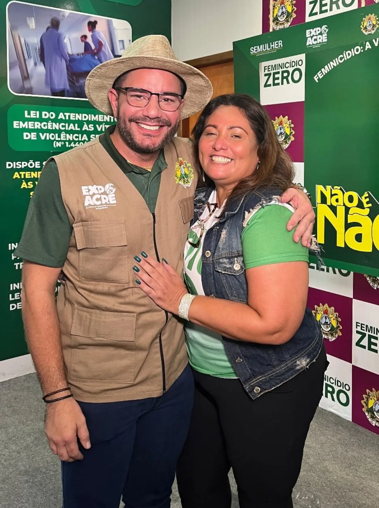 Mabel Freitas em momento especial tietando o governador Gladson Cameli.