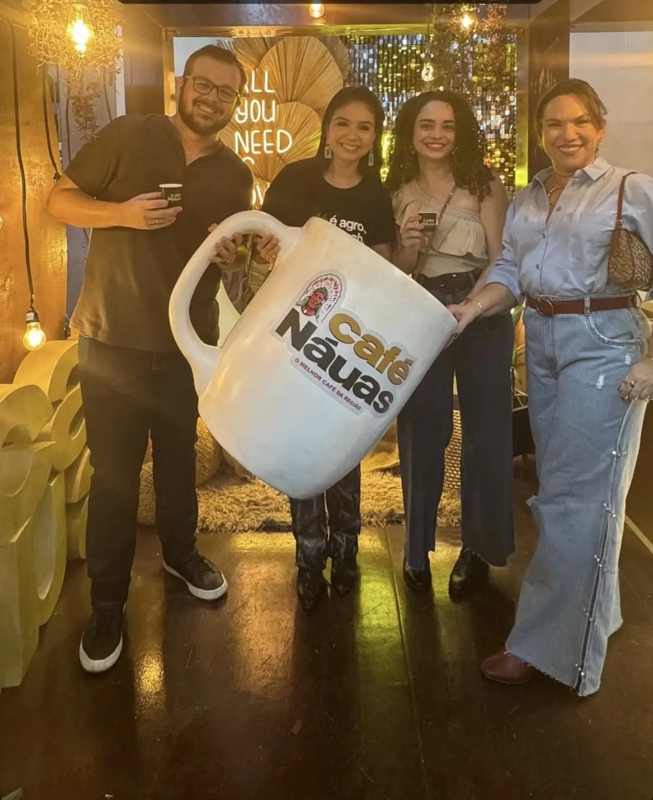 Procuradora de Justiça Katia Rejane Araujo com a filha Camila e o genro Rodrigo Guerra em visita ao stand do café nauás, prestigiando a empresária Patrícia Parente.