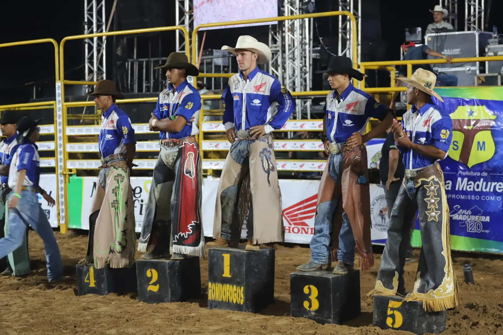 A última noite foi marcada pelas finais do rodeio. O senamadureirense Alexandre Soares, de 26 anos, foi o grande campeão na modalidade individual. Já na categoria em equipe, os peões de Feijó garantiram uma motocicleta zero km.