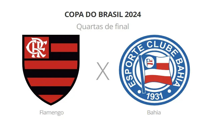 Flamengo e Bahia medem forças às 21h45 (de Brasília) desta quinta-feira, no Maracanã, pelo jogo de volta das quartas de final da Copa do Brasil. O Rubro-Negro venceu o primeiro duelo por 1 a 0 e tem a vantagem do empate. A partida terá transmissão do Premiere, da TV Globo e do sportv, além de cobertura da partida em tempo real no ge.