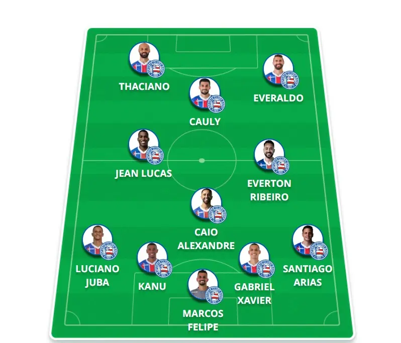 Provável escalação: Marcos Felipe; Santiago Arias, Gabriel Xavier, Kanu e Luciano Juba; Caio Alexandre, Jean Lucas, Everton Ribeiro e Cauly; Thaciano e Everaldo.