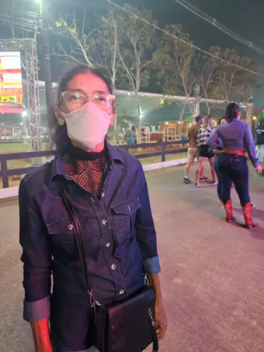 Dona Ingraça da Silva Araújo, de 65 anos, foi uma das visitantes que chamou a atenção na Expoacre por estar usando máscara durante o evento/Foto: ContilNet