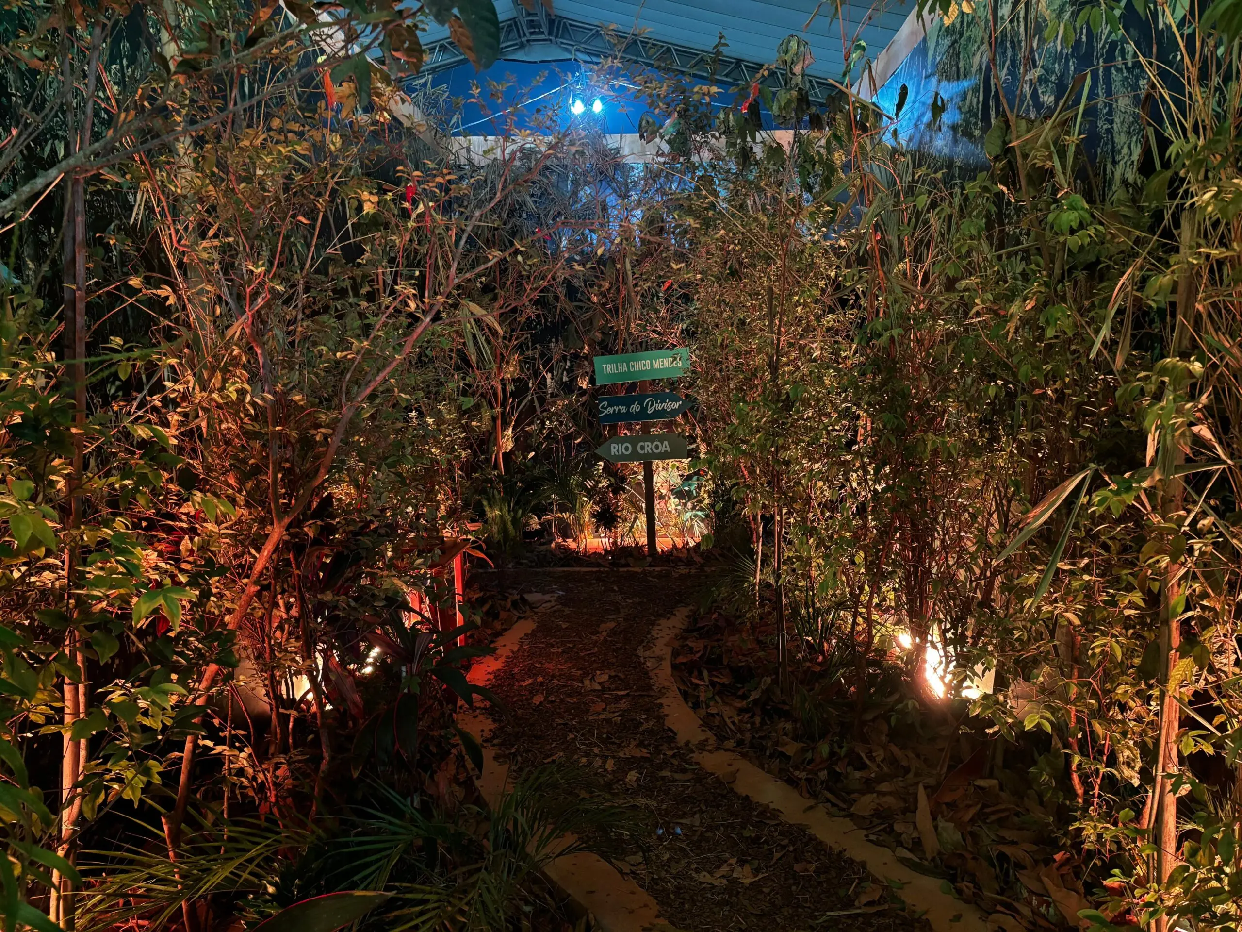 O espaço apresenta atrações como uma oca indígena, onde o público pode assistir a apresentações de danças, músicas e cultura indígena. Além disso, óculos 3D proporcionam uma experiência imersiva de um festival indígena.