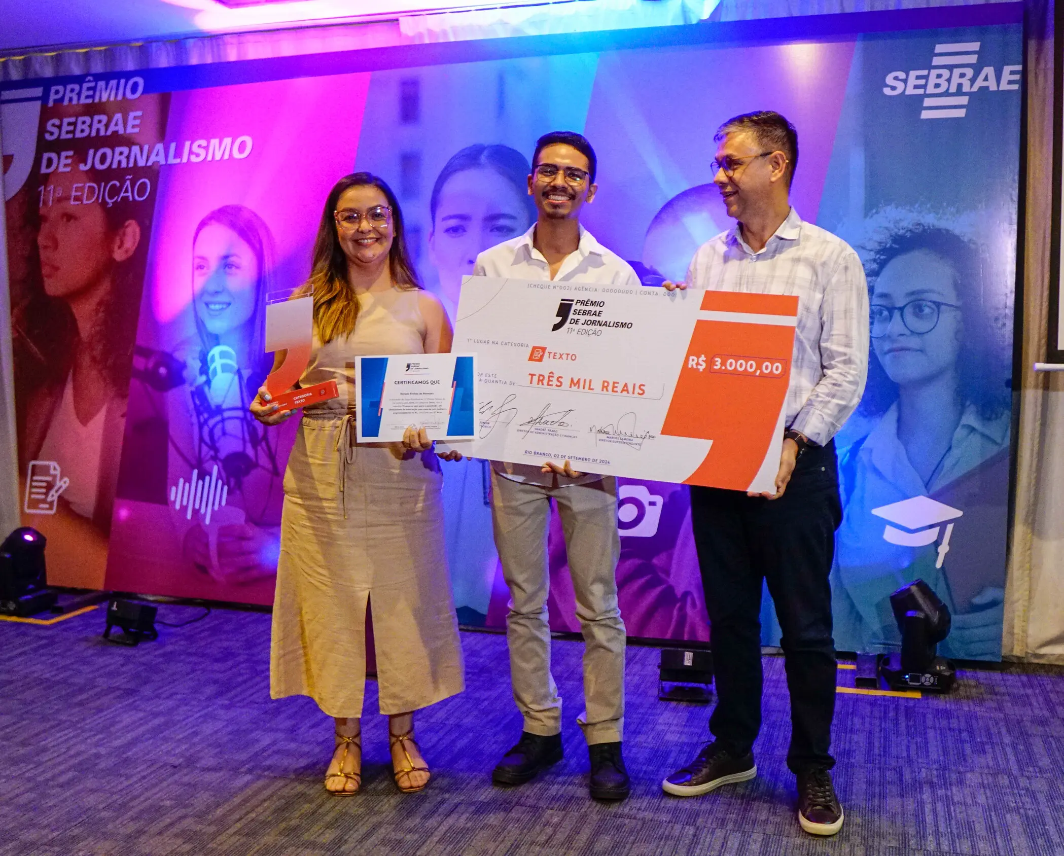 As reportagens que se destacaram na 11ª edição do Prêmio Sebrae de Jornalismo 2024 – Etapa Estadual Acre foram premiadas na sexta-feira (20). A solenidade de premiação aconteceu na sede do Sebrae no Acre, em Rio Branco, reunindo os finalistas do PSJ e profissionais de comunicação do estado.