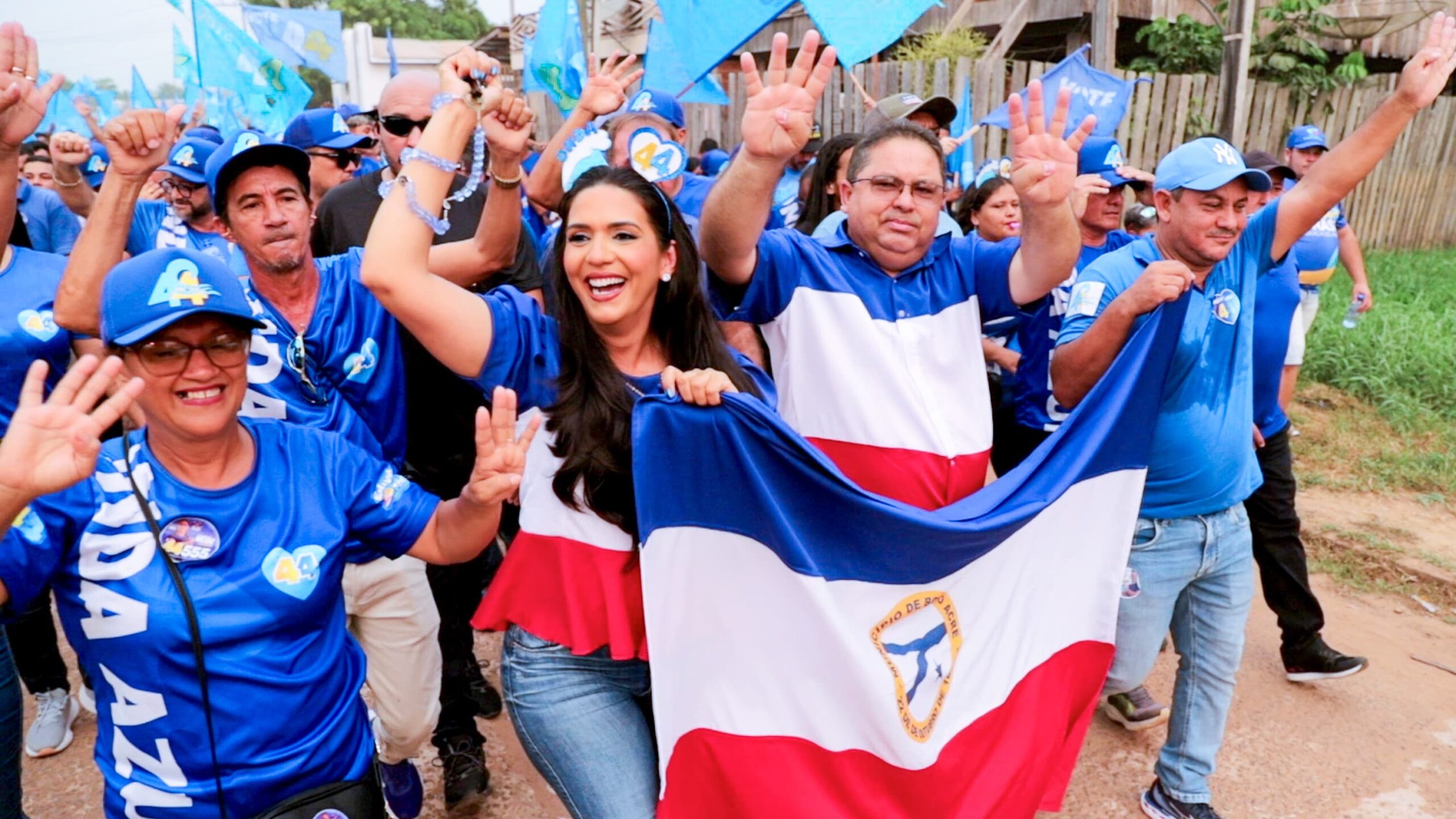 Ao lado da militância, Edygley Melo e Taisa Onofre, candidatos a prefeito e vice, comandaram uma multidão que coloriu de azul as ruas da cidade.