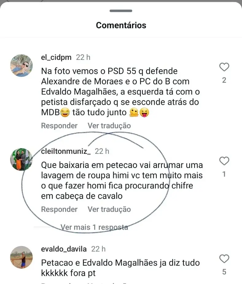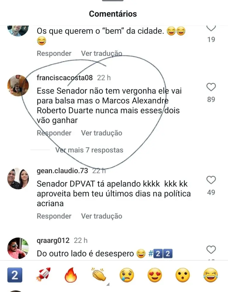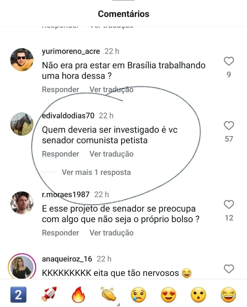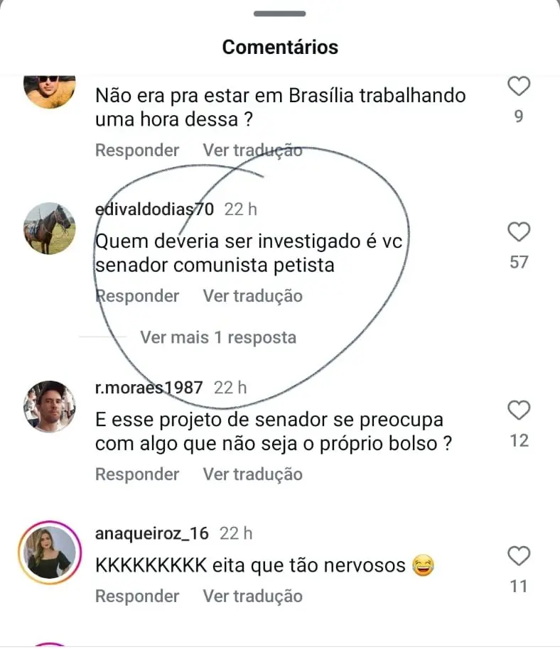 No mesmo tom, é a reação dos internautas nas redes sociais. As mensagens nos comentários no Instagram não são nada favoráveis ao senador e a seus aliados.