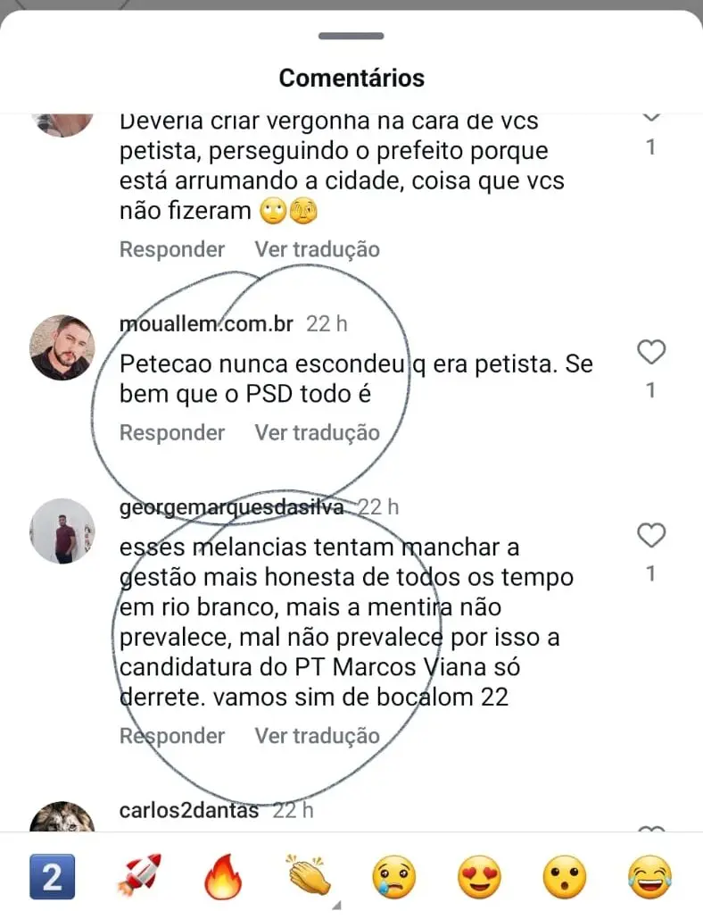 Além de Petecão, participaram das denúncias o deputado federal Roberto Duarte (Republicanos-AC) e os estaduais Edvaldo Magalhães (PCdoB) e Michele Melo (PDT), todos aliados do candidato a prefeito da coligação MDB/PT/PV/PCdoB/PSOl, o ex-prefeito petista Marcus Alexandre. A vinculação dos denunciantes com a campana do principal adversário do prefeito Tião Bocalom, que é candidato à reeleição pela coligação PL/PP/União Brasil, levou seus aliados, como o vereador João Marcos Luz (PL) e o senador Márci Bittar (UB-AC), a reagirem com acusações de que o grupo quer, na verdade, conseguir a supensão de obras do programa “Asfata Rio Branco”.