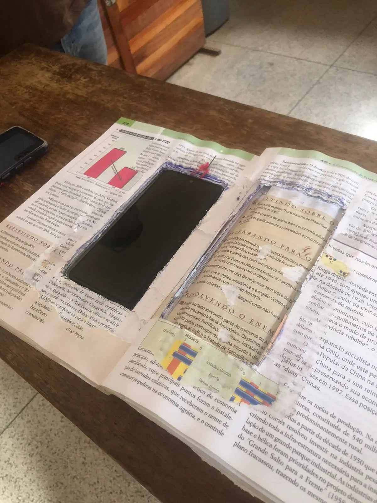 Polícia encontra celular escondido dentro de livro após detento voltar da escola; VÍDEO