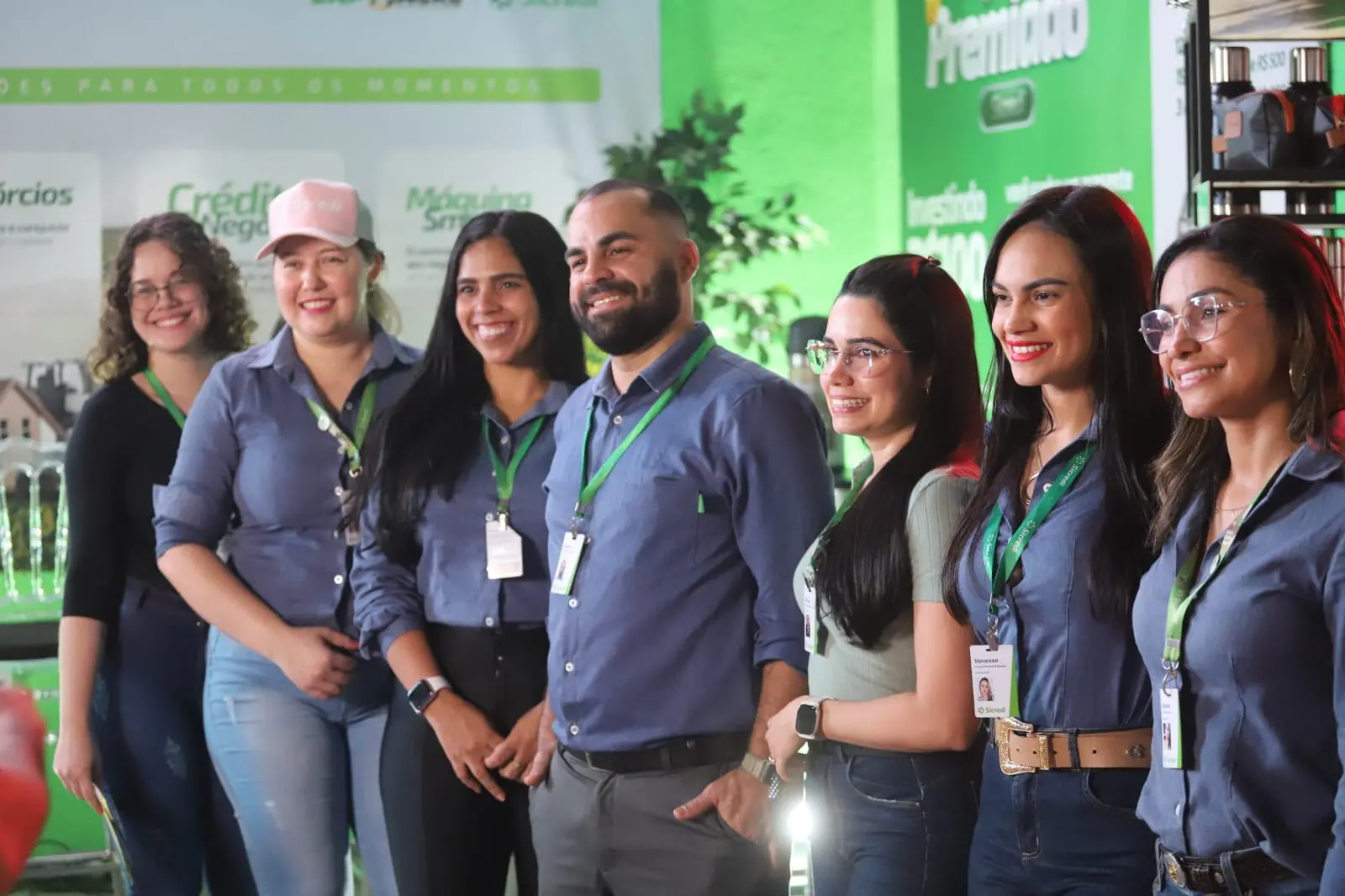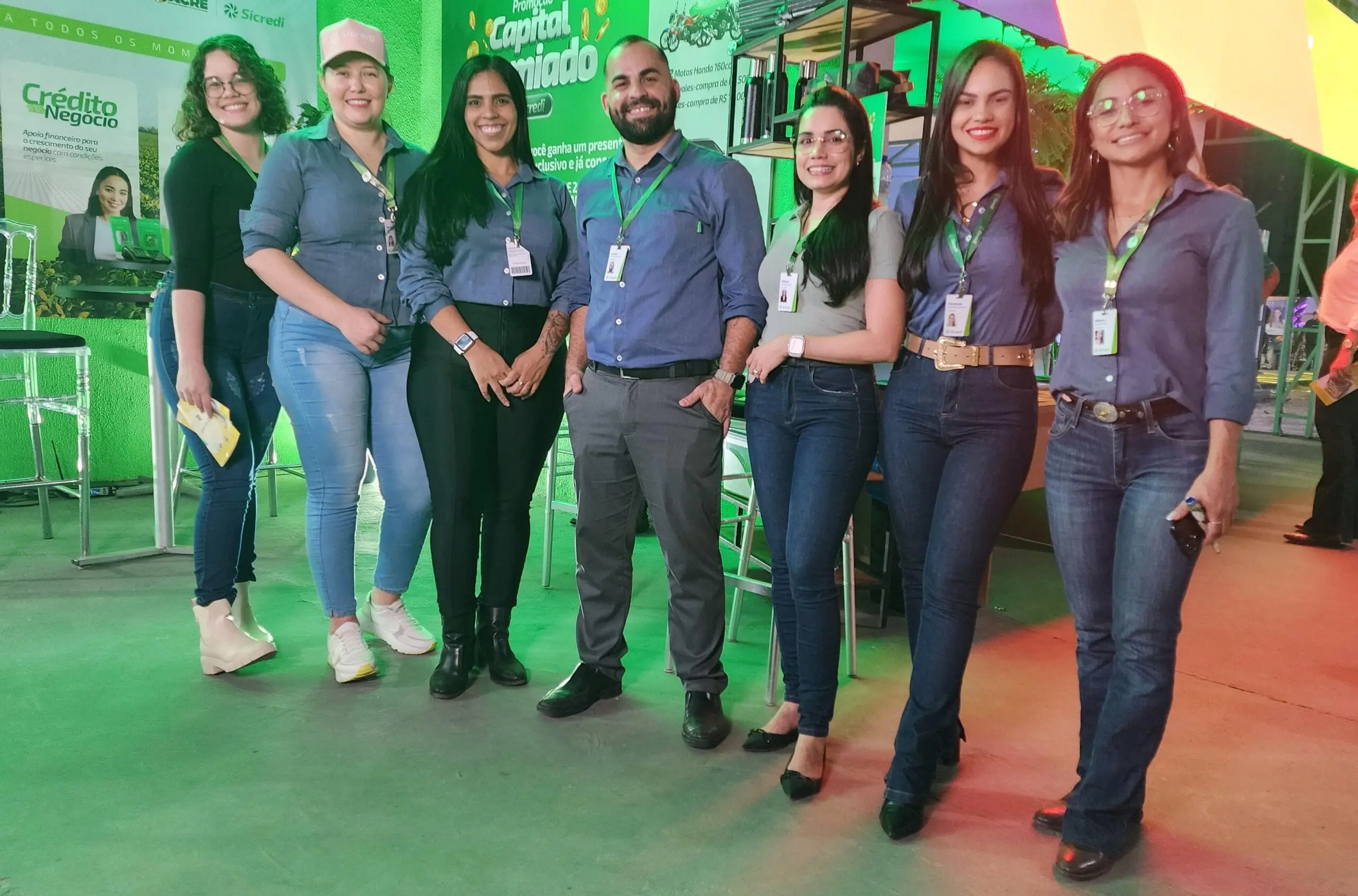 Equipe Sicredi na Expoacre 2024, destacando seu modelo cooperativista e oferecendo condições exclusivas e brindes para os visitantes/Foto: ContilNet