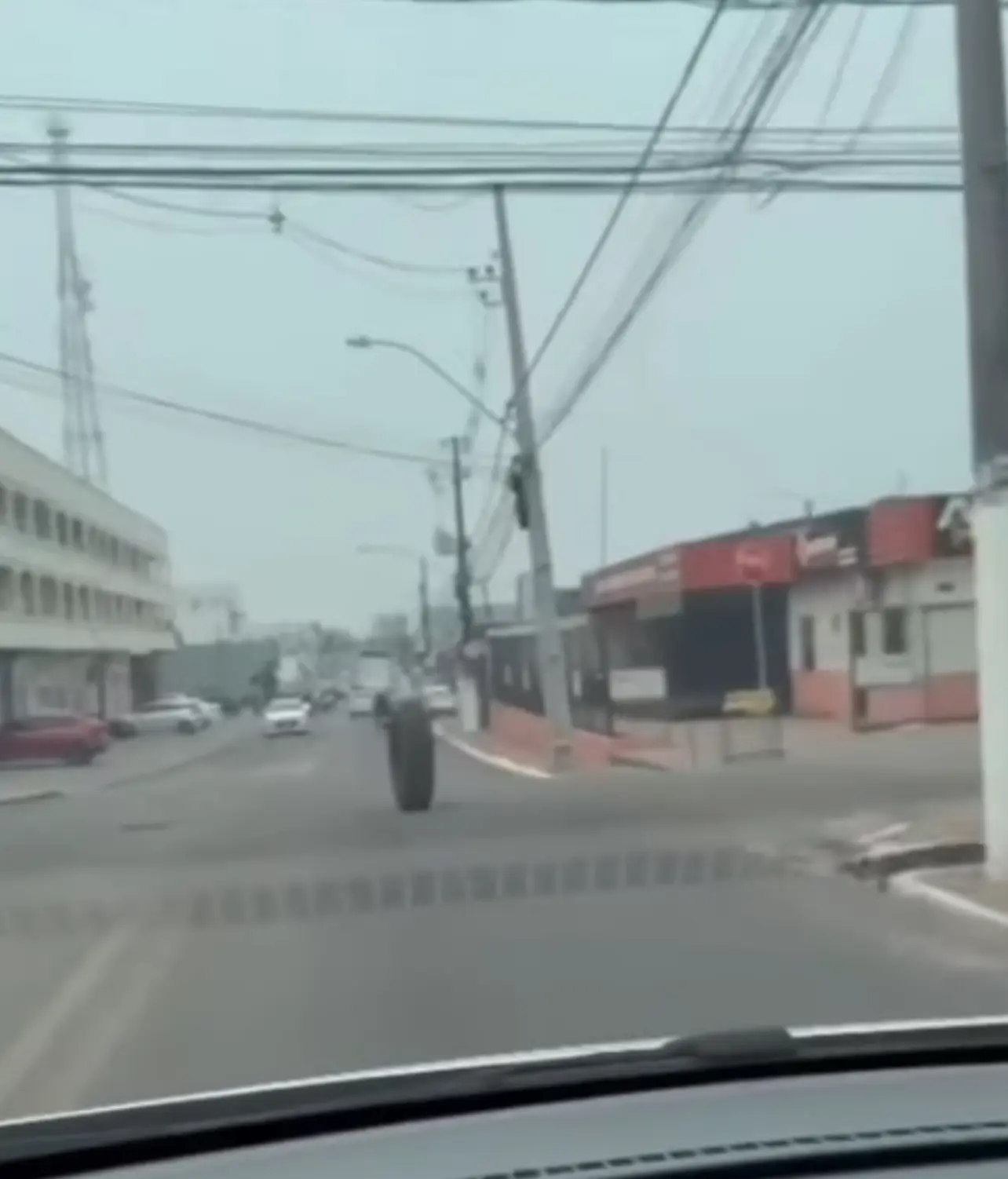 Pneu cai de caminhão, sai desgovernado e atinge carro em rua movimentada de Rio Branco; VÍDEO