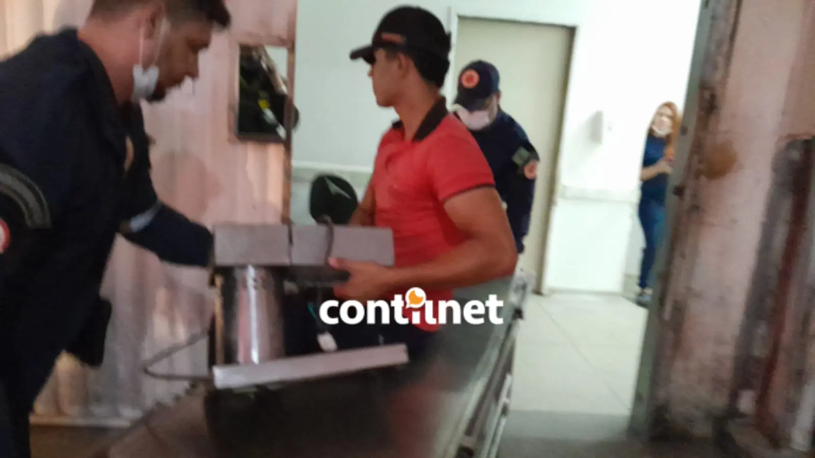 Aldemir de Oliveira Guimarães com a mão presa no amaciador de carne, sendo socorrido após o acidente/Foto: ContilNet