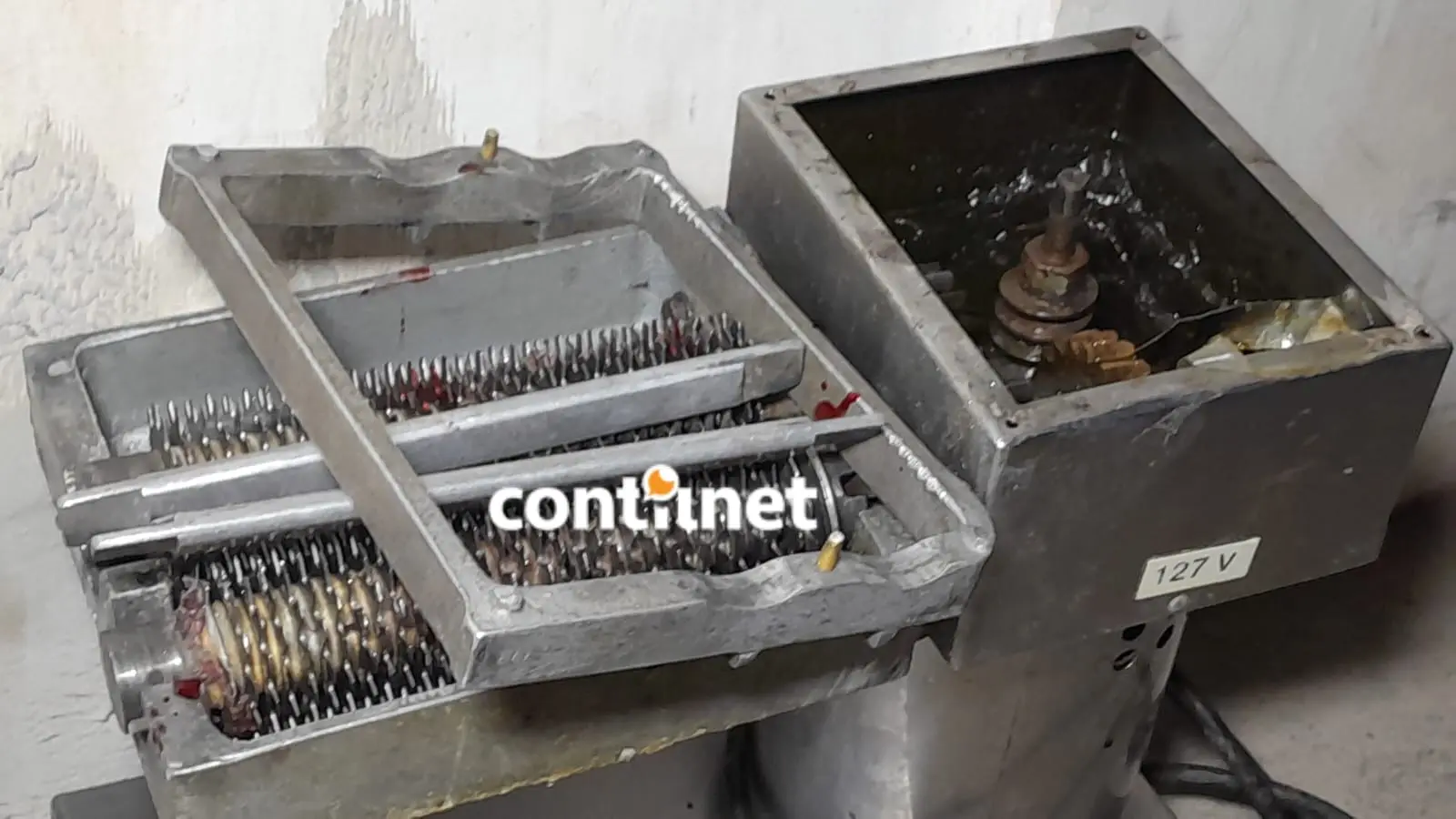 Amaciador de carne após ser desmontado pelos bombeiros no Pronto-Socorro/Foto: ContilNet