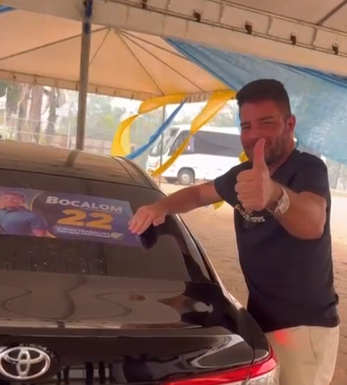 Cameli, que já havia anunciado seu apoio à chapa Bocalom/Alysson, mostrou-se ativo na promoção da candidatura, o que foi registrado em detalhes no vídeo. O governador foi visto aplicando adesivo com o nome e número dos candidatos em um veículo, uma ação que reforça seu compromisso com a campanha.