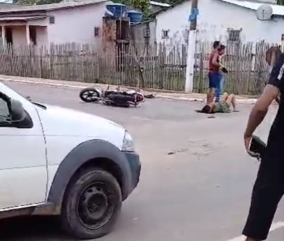 Acidente entre carro e mototáxi deixa passageiro ferido em cruzamento de ruas em Sena Madureira. Foto: Reprodução