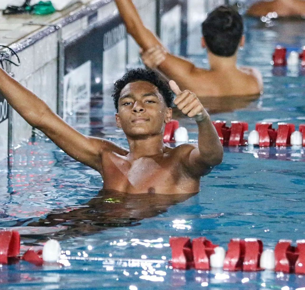 O acreano Luiz Antonio Jerônimo da Silva, de 13 anos, estudante do Instituto São José e atleta da AABB, venceu a prova dos 50m peito com o tempo de 31.84, durante a 26ª Copa Amazônica de Natação, com o Trófeu Internacional Luciléia Barreto Queirós, em Rio Branco.