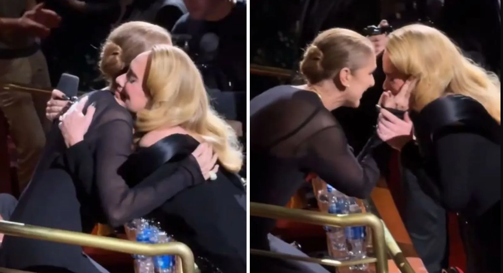 A cantora Adele, 36, se emocionou ao ver Céline Dion, 56, na plateia de seu show em Las Vegas, no último sábado (26).
