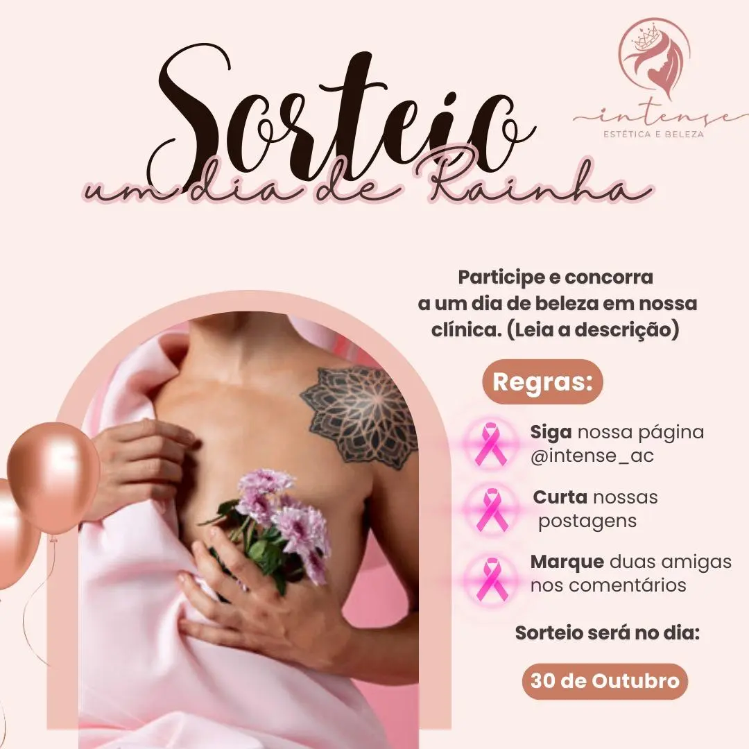 A Intense está também com o sorteio: um dia de rainha em seu Instagram, é super fácil! Para participar e concorrer a um dia de beleza é só seguir @intense_ac, curtir a postagem e marcar duas amigas. O sorteio será dia 30 de outubro.