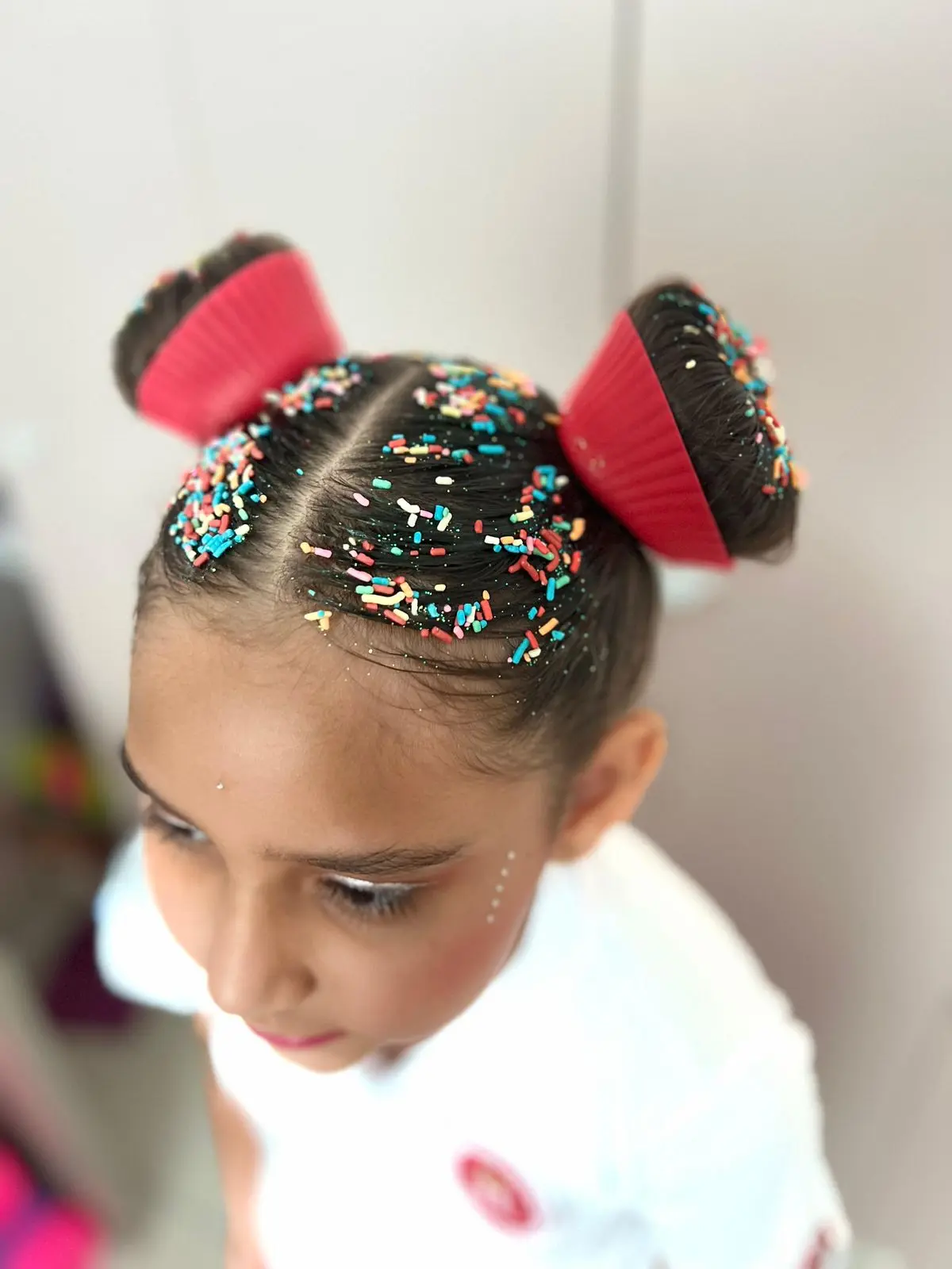 Na última terça-feira (8) aconteceu no colégio da pequena Maria Isabela Moura o Dia do Cabelo Maluco, uma brincadeira que consiste em criar penteados criativos e coloridos para celebrar o Dia das Crianças e o Halloween. Maria arrasou com seu penteado!