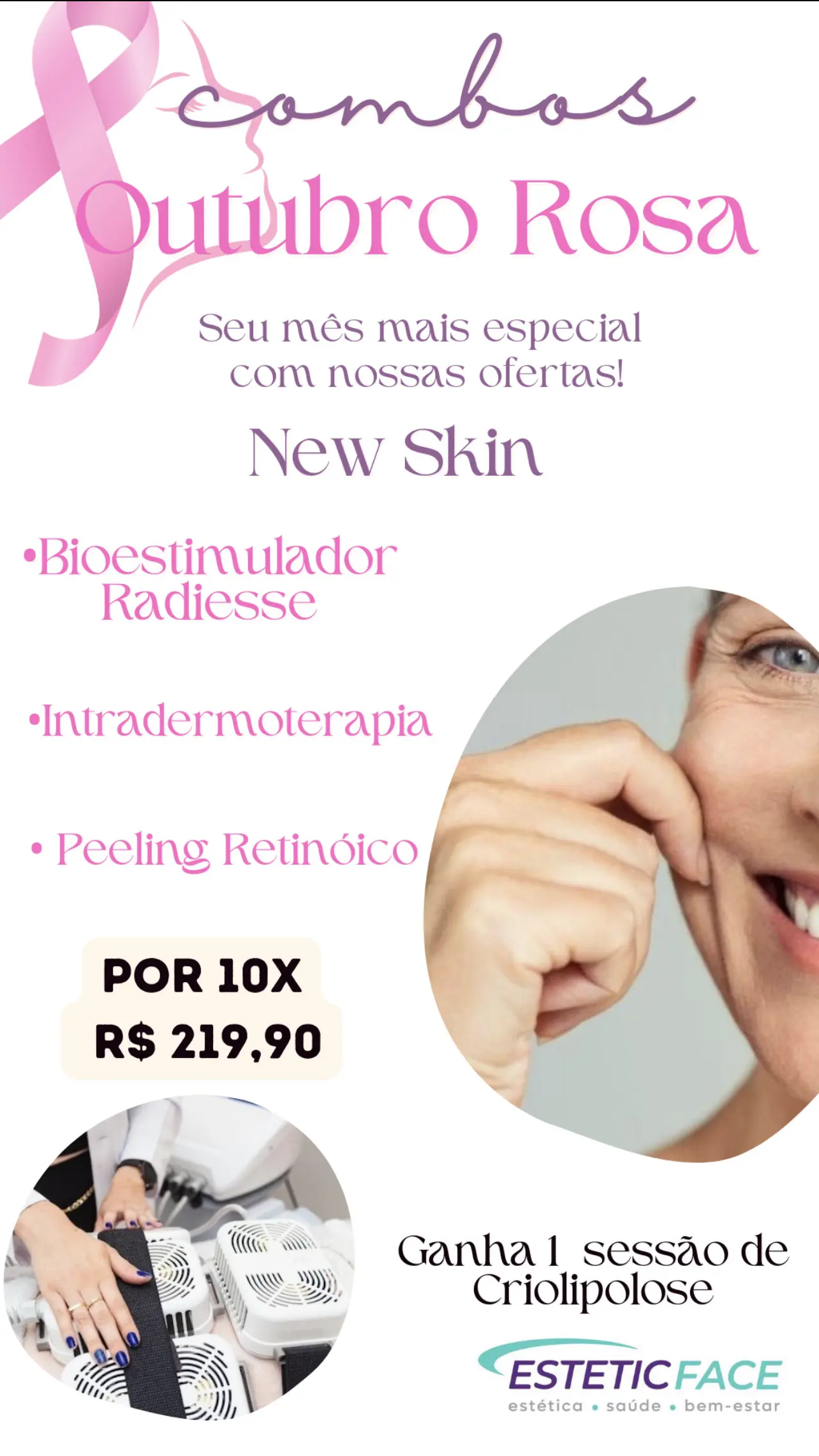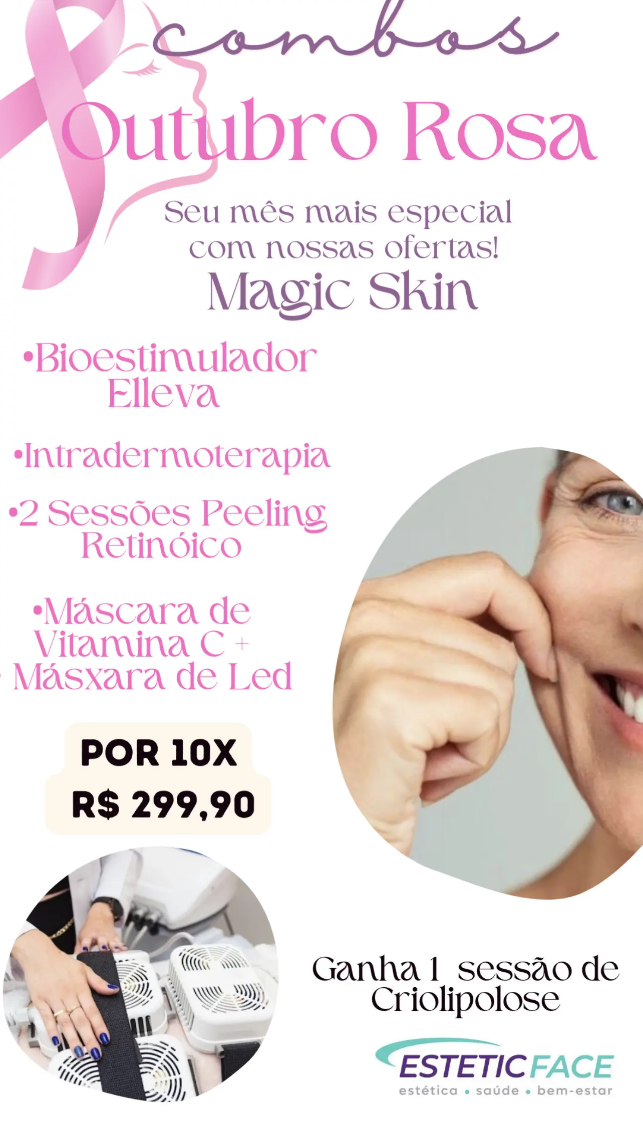 A Estetic Face preparou combos especiais em alusão ao Outubro Rosa deixando o mês mais especial para você aproveitar e realizar o procedimento que tanto deseja.