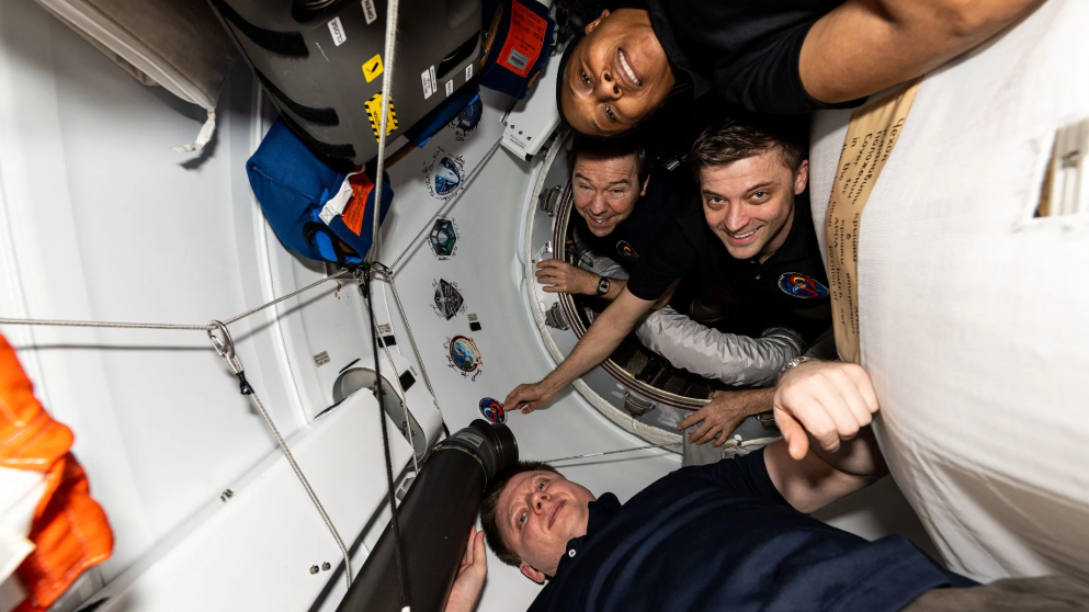 Os quatro membros da tripulação que compuseram a missão SpaceX Crew-8 a bordo da Estação Espacial Internacional/Foto: Nasa/Divulgação