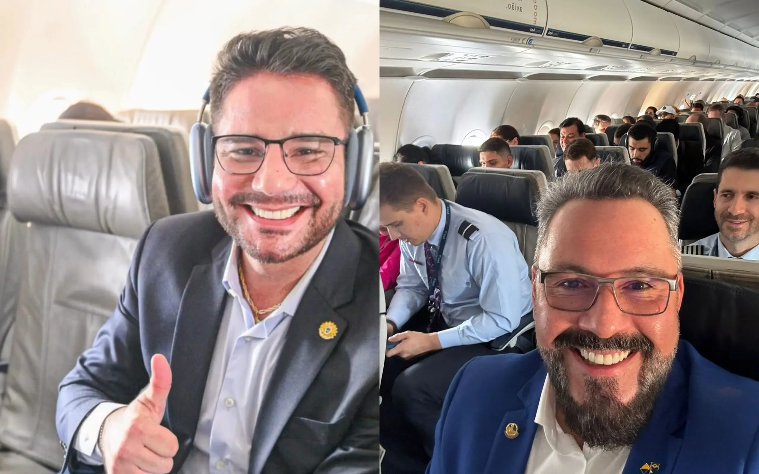 Gladson e Alan Rick compartilharam o momento do embarque do voo inaugural da Azul/Foto: Reprodução/Redes sociais