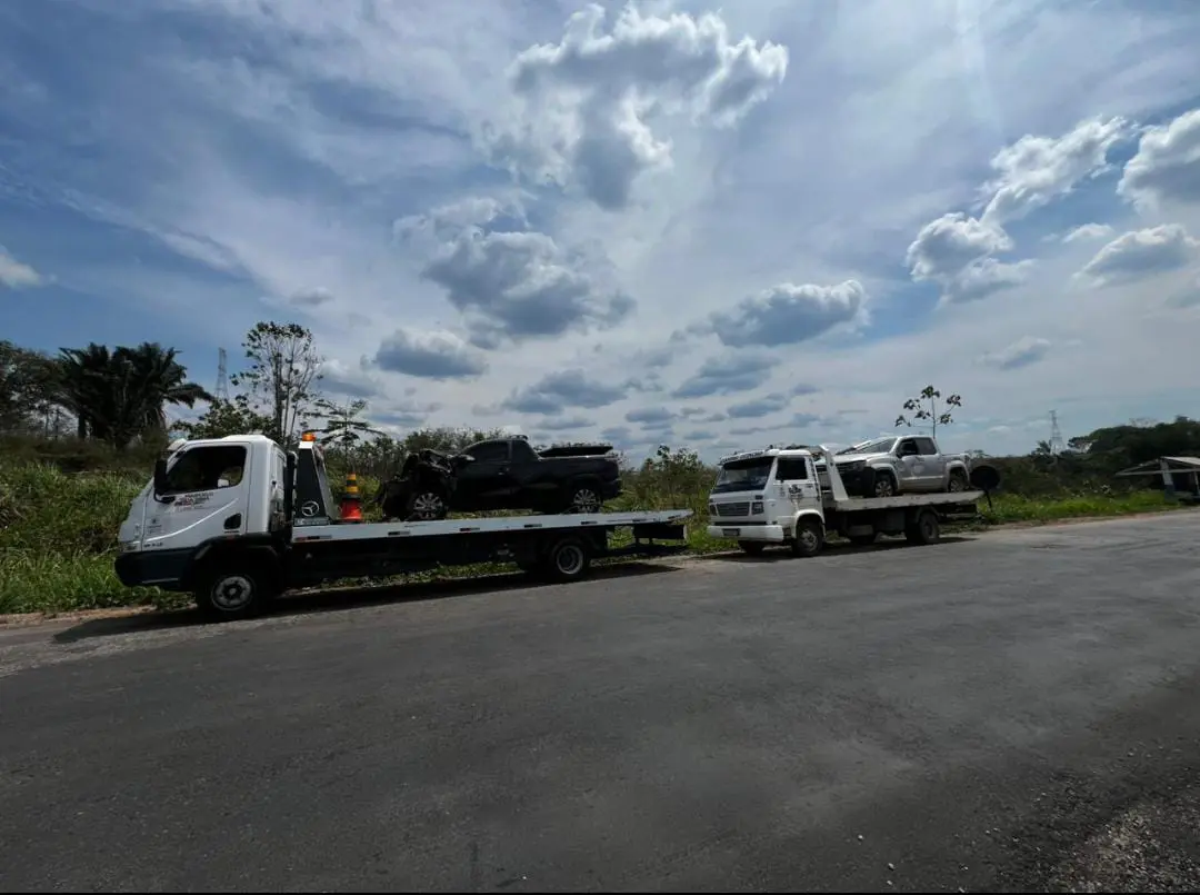 Após a batida, dois guinchos foram acionados e levaram tanto o carro Saveiro quanto a Amarok para as devidas providências relacionadas ao conserto.