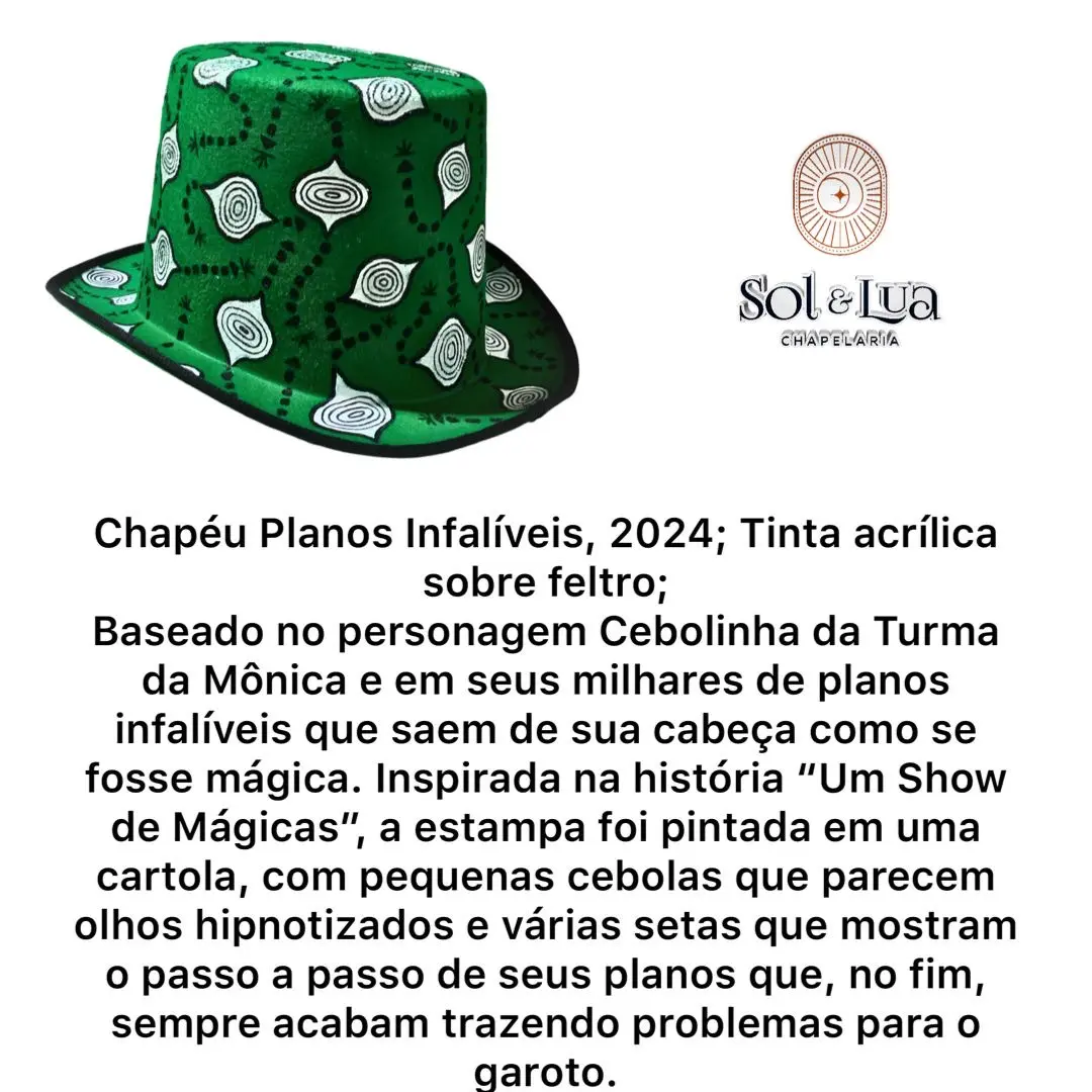 Os chapéus exclusivos da Sol & Lua, criados por Iracema Justa, foram elementos centrais na coleção, agregando elegância e um toque lúdico. Desde quepes até boinas, os acessórios complementaram perfeitamente o conceito criativo de Caetano, unindo o espírito irreverente de Maurício de Sousa ao mundo da moda.