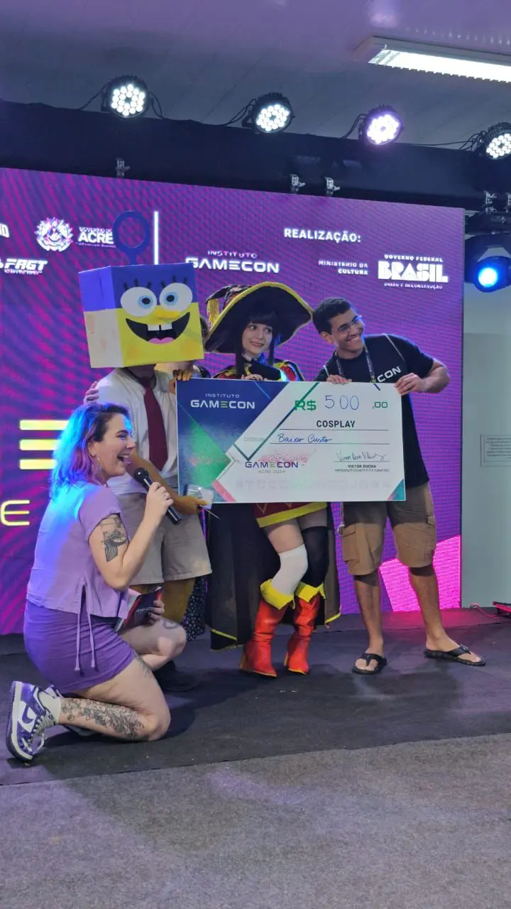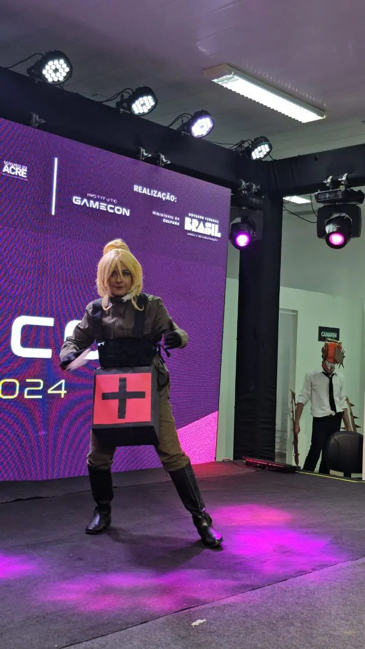 Competidores do ‘Cosplay baixo custo’ trazem diversão e inovação ao palco da Gamecon Acre 2024, conquistando o público com apresentações criativas e bem-humoradas.