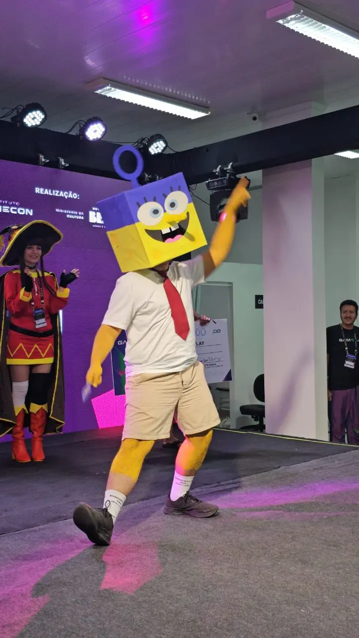 Bob Esponja herói, interpretado por Bruno Santos, conquista o primeiro lugar no ‘Cosplay baixo custo’ e leva o prêmio principal da noite na Gamecon Acre 2024/Foto: ContilNet