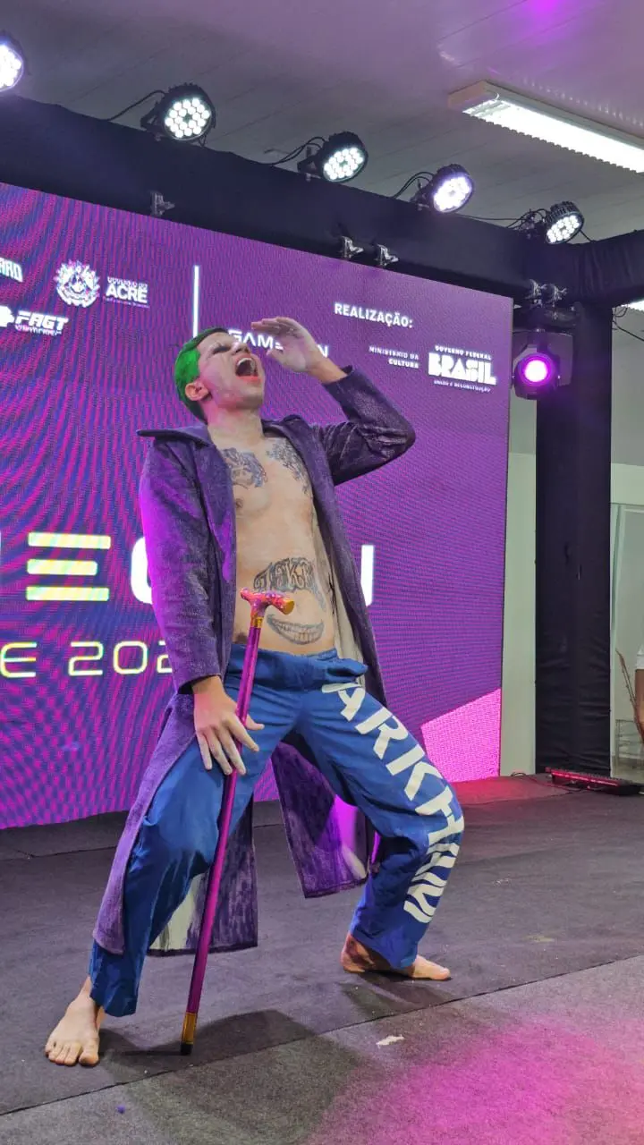A programação do primeiro dia da Gamecon Acre 2024 encerrou com o concurso e desfile ‘Cosplay baixo custo’. Com 12 competidores, as apresentações chamaram atenção e animaram o início da noite.