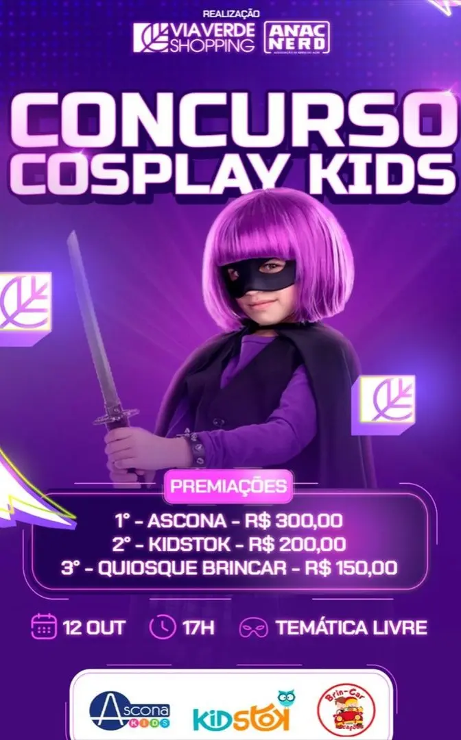 O concurso Cosplay Kids acontece neste sábado (12), a partir das 17h, no Via Verde Shopping. A temática é livre (e a diversão também).