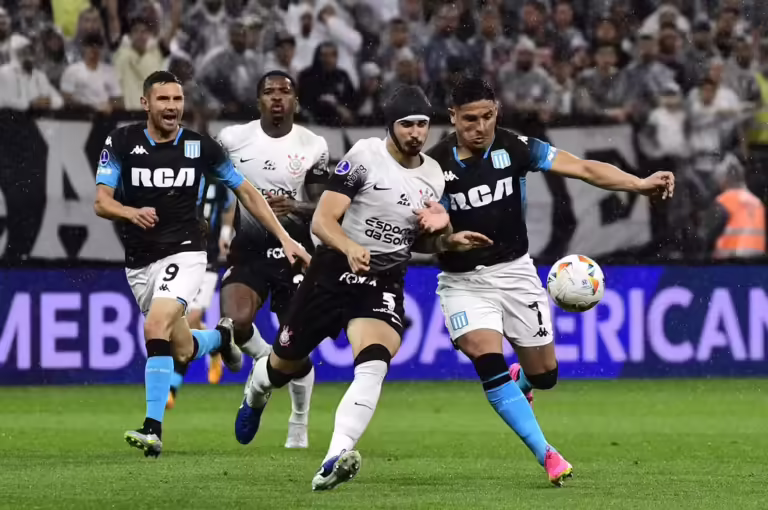 Novamente o Timão apresentou dificuldades defensivas, não apenas por questões individuais (como no primeiro gol, em que Cacá corta errado, e Hugo Souza está adiantado), mas também por comportamentos coletivos errados. A equipe muitas vezes não consegue encaixar a pressão e se vê obrigada a correr para trás de forma desorganizada. Também falha ao executar perseguições individuais, como foi na jogada do segundo gol do Racing, em que André Ramalho sai à “caça” e não acha nada. Charles e Garro também vão mal na marcação neste lance.