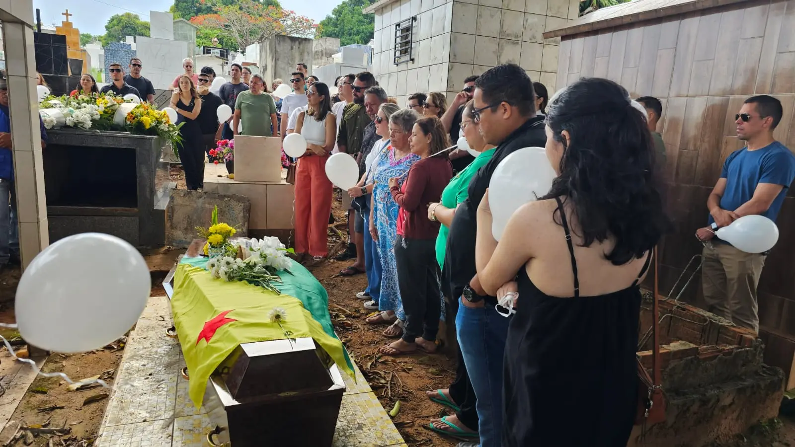O enterro aconteceu por volta das 7h30min. Marcão – como era chamado pelos mais próximos – recebeu homenagens com balões brancos e flores.