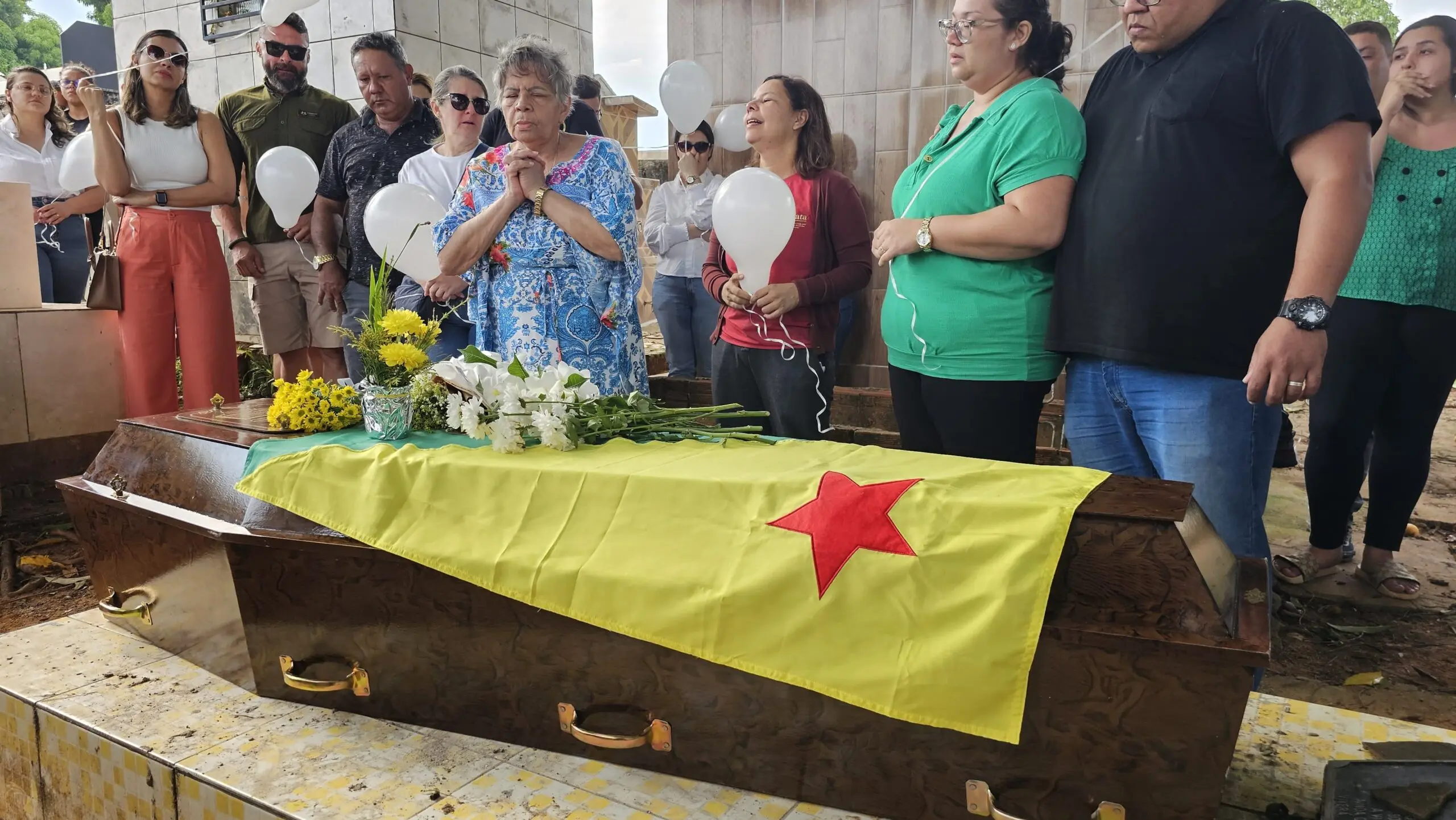 Em cima do caixão, a bandeira do Acre foi colocada, como forma de agradecimento e entrega ao trabalho prestado em todos esses anos.