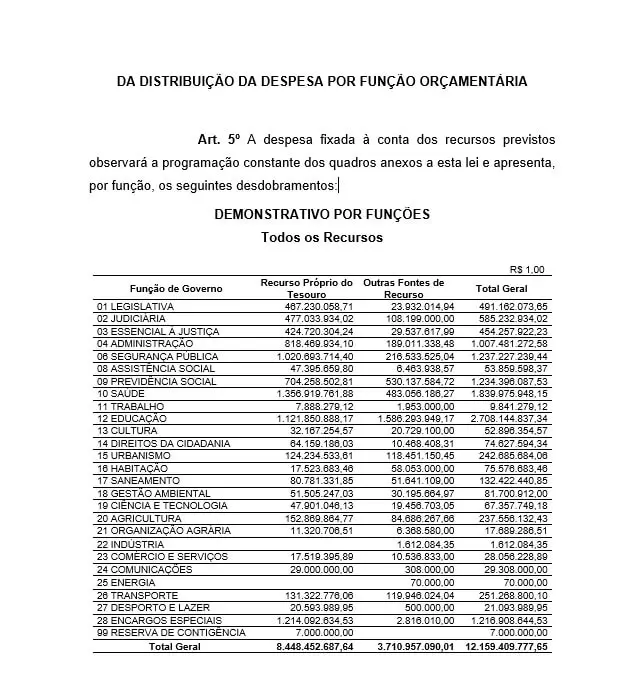 Texto prevê os gastos públicos por setor/Foto: Reprodução