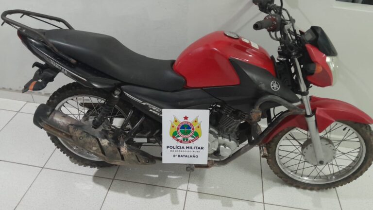 Uma equipe da Polícia Militar de Sena Madureira conseguiu recuperar nesta quinta-feira (24) mais uma motocicleta que tinha sido furtada em Rio Branco. Durante a ação, um morador foi preso e encaminhado para a Unidade de Segurança Pública.