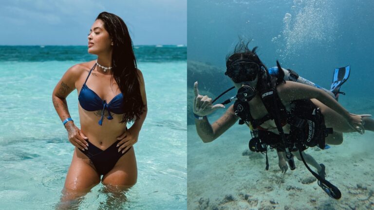 Sandy Monteiro: “Dois passeios em San Andrés me marcaram: o mergulho com cilindro, que é bem desafiador e eu não repetiria, e o parasail, uma experiência inesquecível para ver o mar de sete cores lá de cima.”