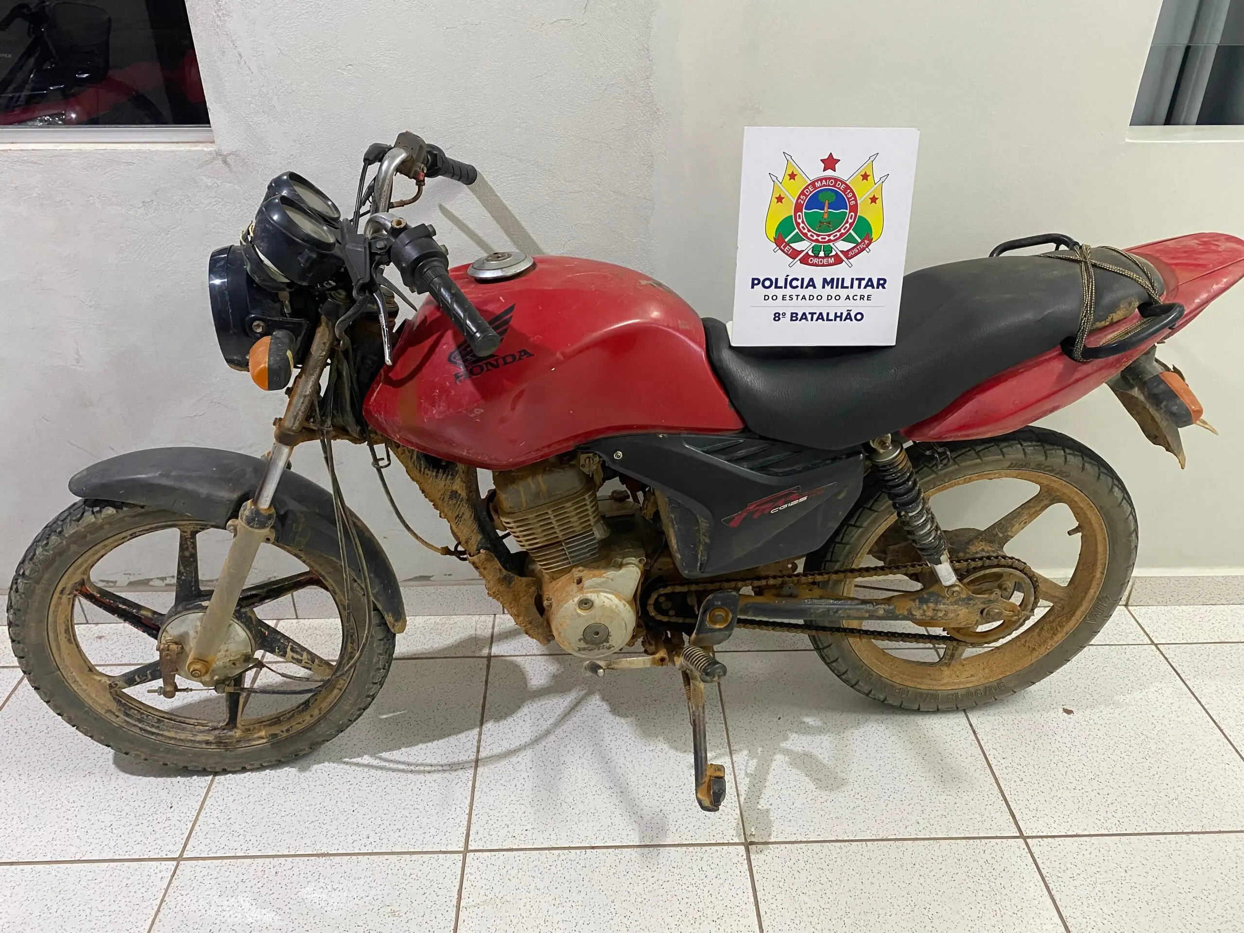 Na noite desta quinta-feira (17), um jovem de 19 anos foi preso pela Polícia Militar após ser flagrado com uma motocicleta modelo Honda Titan, de cor vermelha, que possuía restrição de furto. A prisão ocorreu no quilômetro 17 do Ramal do Ouro, próximo ao quilômetro 38 da BR-364, entre as cidades de Sena Madureira e Rio Branco.