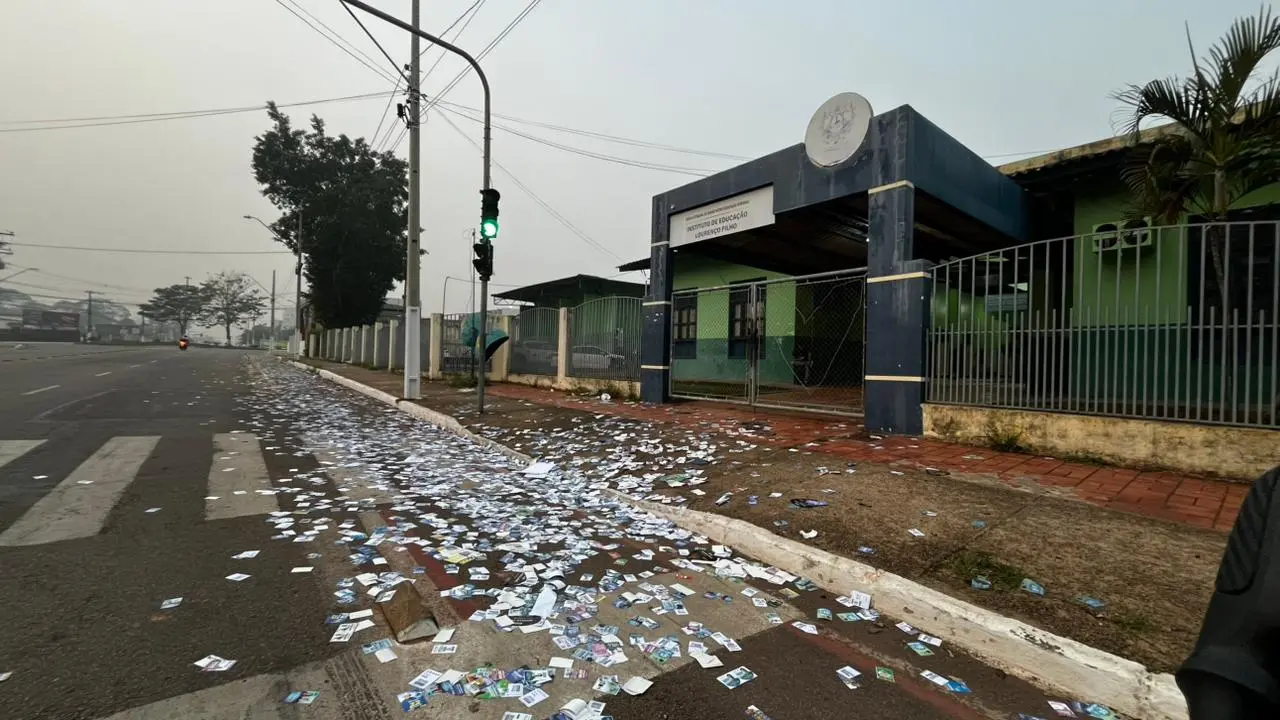 Vários santinhos foram jogados na frente das escolas/Foto: ContilNet