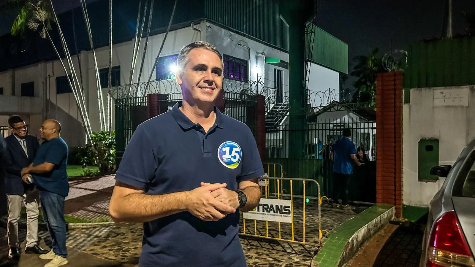 Marcus Alexandre, candidato do MDB à Prefeitura de Rio Branco, chega ao debate da Rede Amazônica acompanhado de aliados/Foto: g1