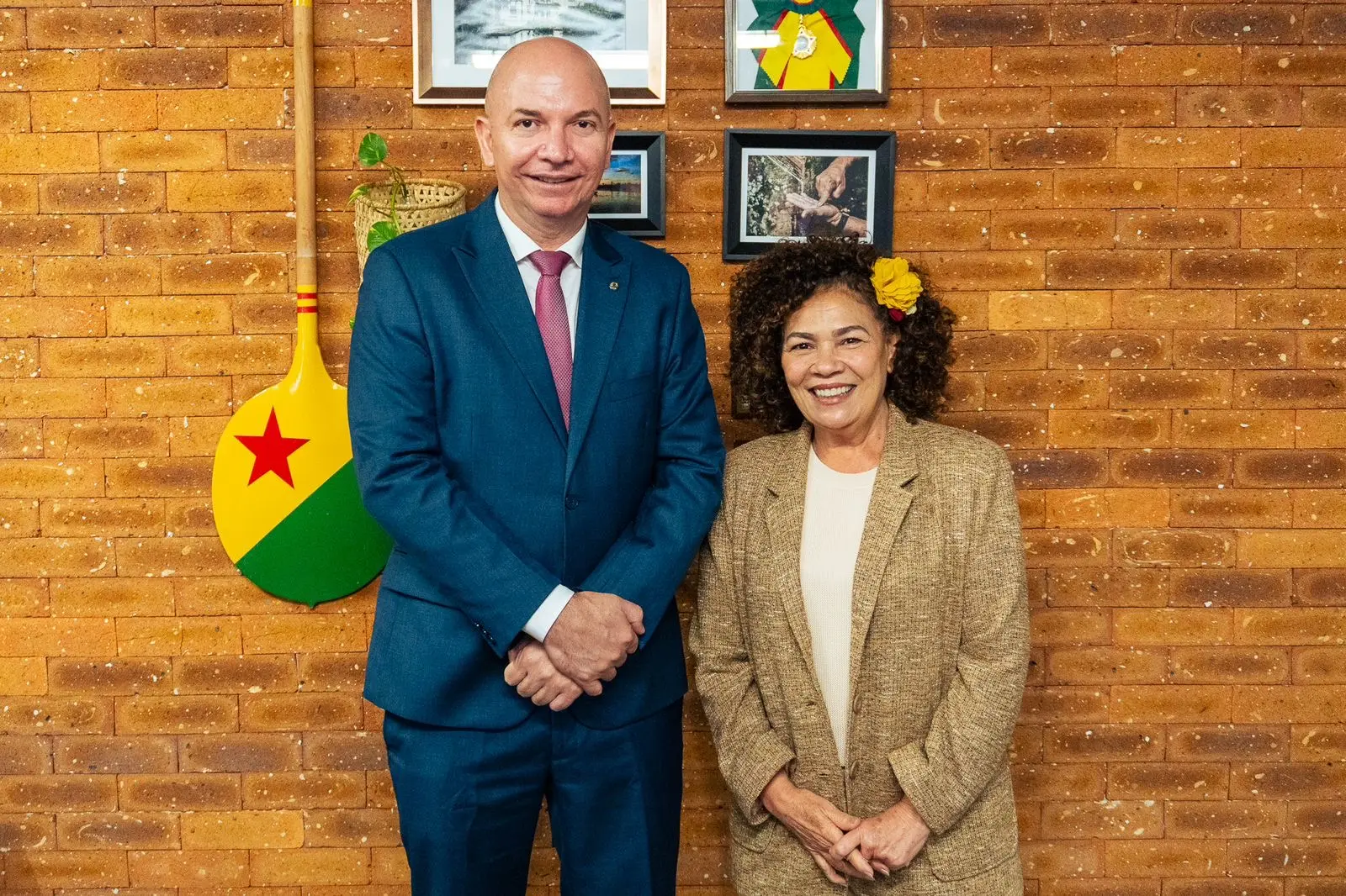 Perpétua Almeida, diretora da ABDI, recebeu o deputado federal e prefeito eleito de Sena Madureira, Gerlen Diniz, em Brasília, para discutir uma parceria que visa fortalecer a agricultura familiar e impulsionar a cafeicultura na região do Purus.