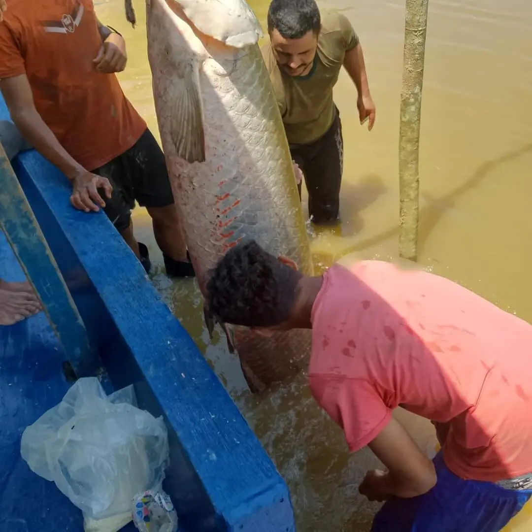 A pescaria ocorreu enquanto o grupo estendia suas redes em busca de peixes menores. Em um momento inesperado, perceberam que haviam cercado um pirarucu. Pablo, aproveitando a situação, utilizou um arpão para capturar o gigante. “Esticamos a rede para pegar peixe pequeno, mas em certo ponto vimos que ele estava cercado. Foi então que usei o arpão para conseguir pegá-lo”, conta o pescador.