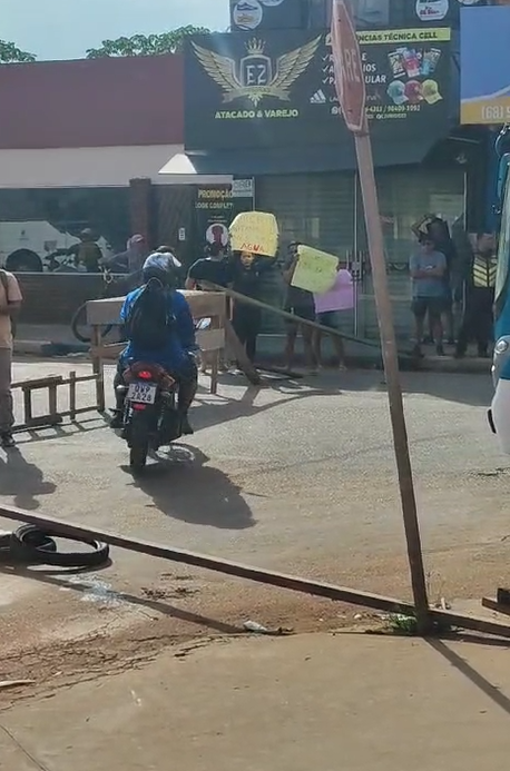 Em vídeo enviado ao ContilNet, é possível ver um registro do momento, com os manifestantes colocando pneus e vigas de ferro para interromper o fluxo do trânsito, em frente à Farmácia Ultra Popular da Sobral.