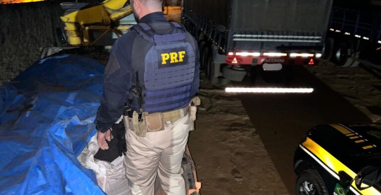 A ação ocorreu na tarde de domingo (13), durante uma fiscalização voltada ao combate de crimes ambientais, quando um caminhão foi abordado devido à inclinação anormal da carroceria, o que indicava o transporte de uma carga pesada.
