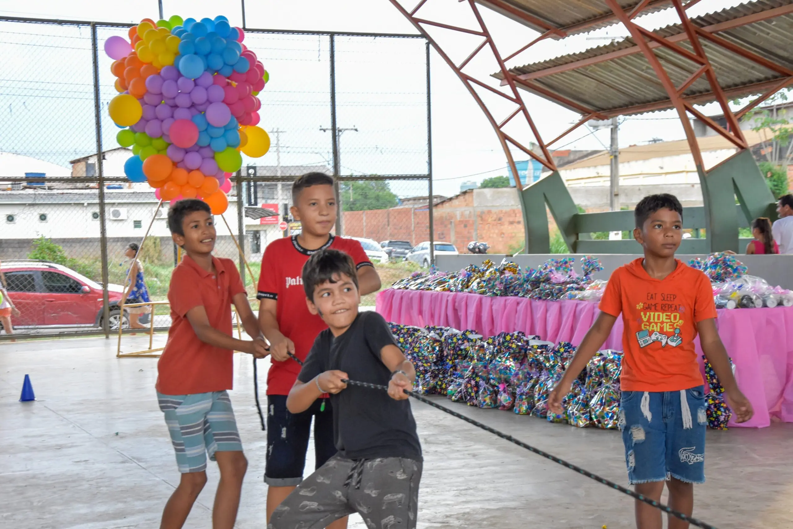 Centenas de crianças e adultos participaram da linda festa e se divertiram com brincadeiras, pula-pula, brinquedos infláveis e no parquinho infantil entregue a comunidade. Também teve distribuição de cachorro quente, pipoca e bolo gigante.