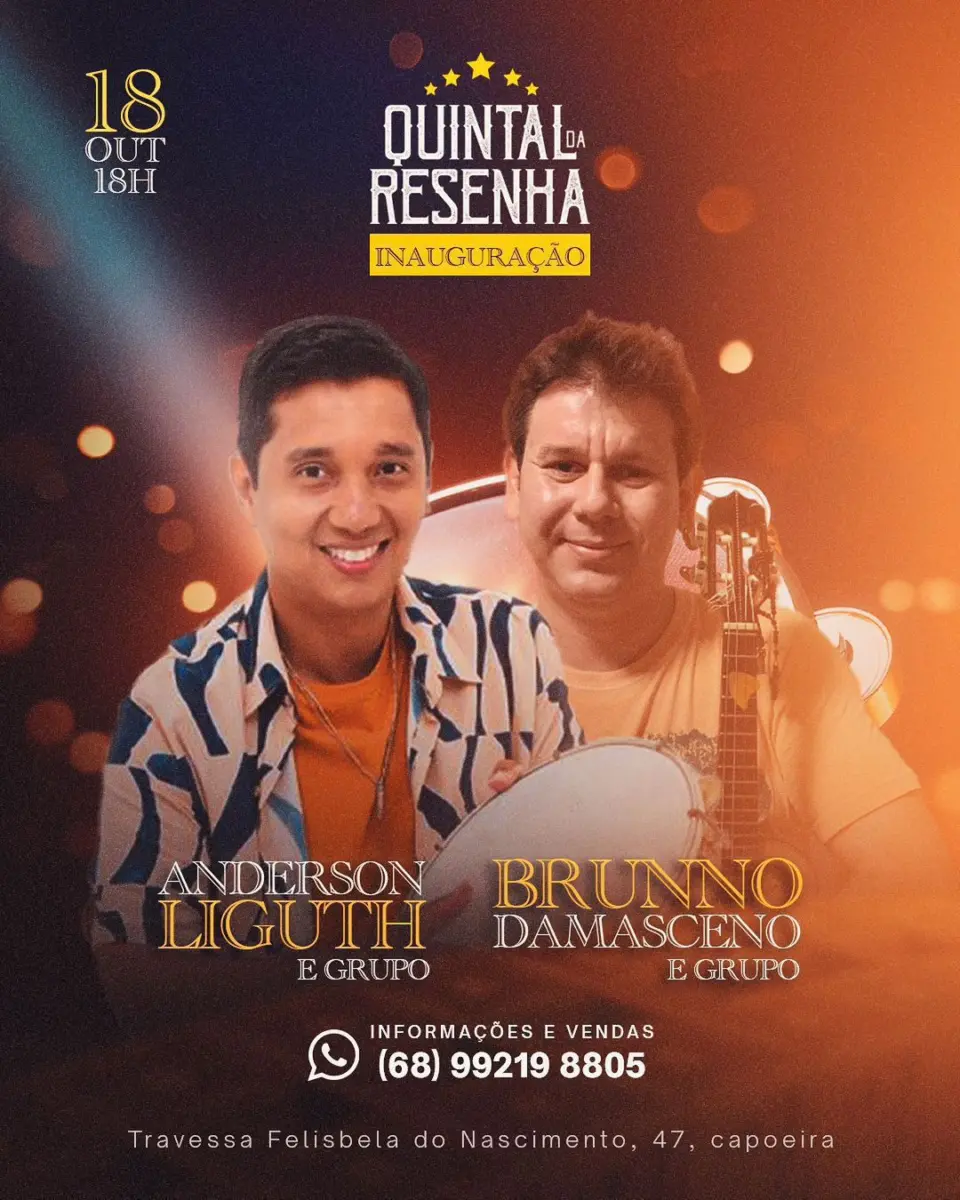 “Se você é de samba, não pode perder a inauguração do Quintal da Resenha, nessa sexta, no lugar do samba acreano. São dois grupos no mesmo espaço, vem para cá”, convidaram Anderson Liguth e Brunno Damasceno.