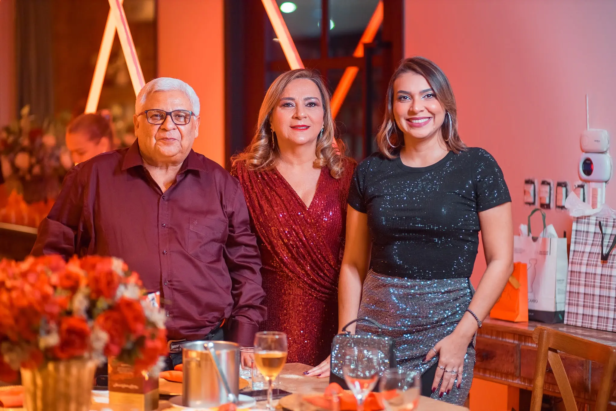 A aniversariante com o esposo, Dr. José Wikens e a filha Isabela.
