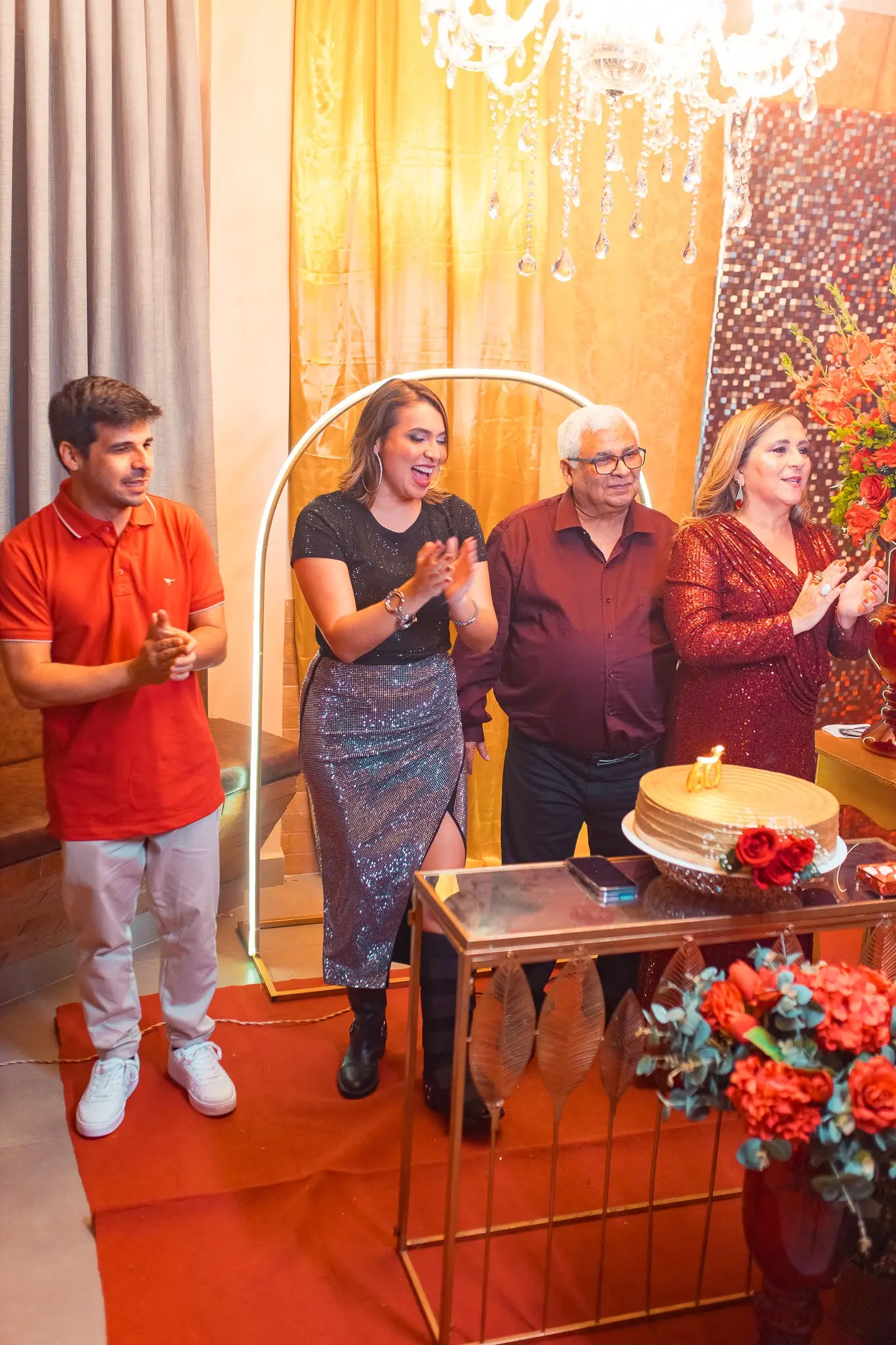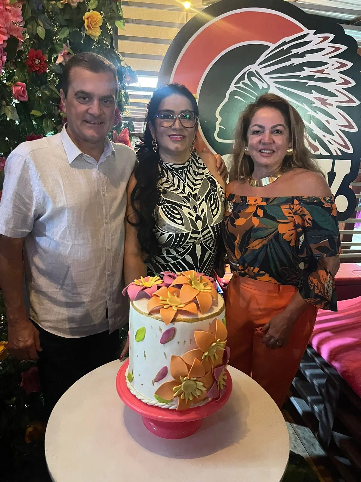 A aniversariante com o esposo, Dr. José Wikens e a filha Isabela.