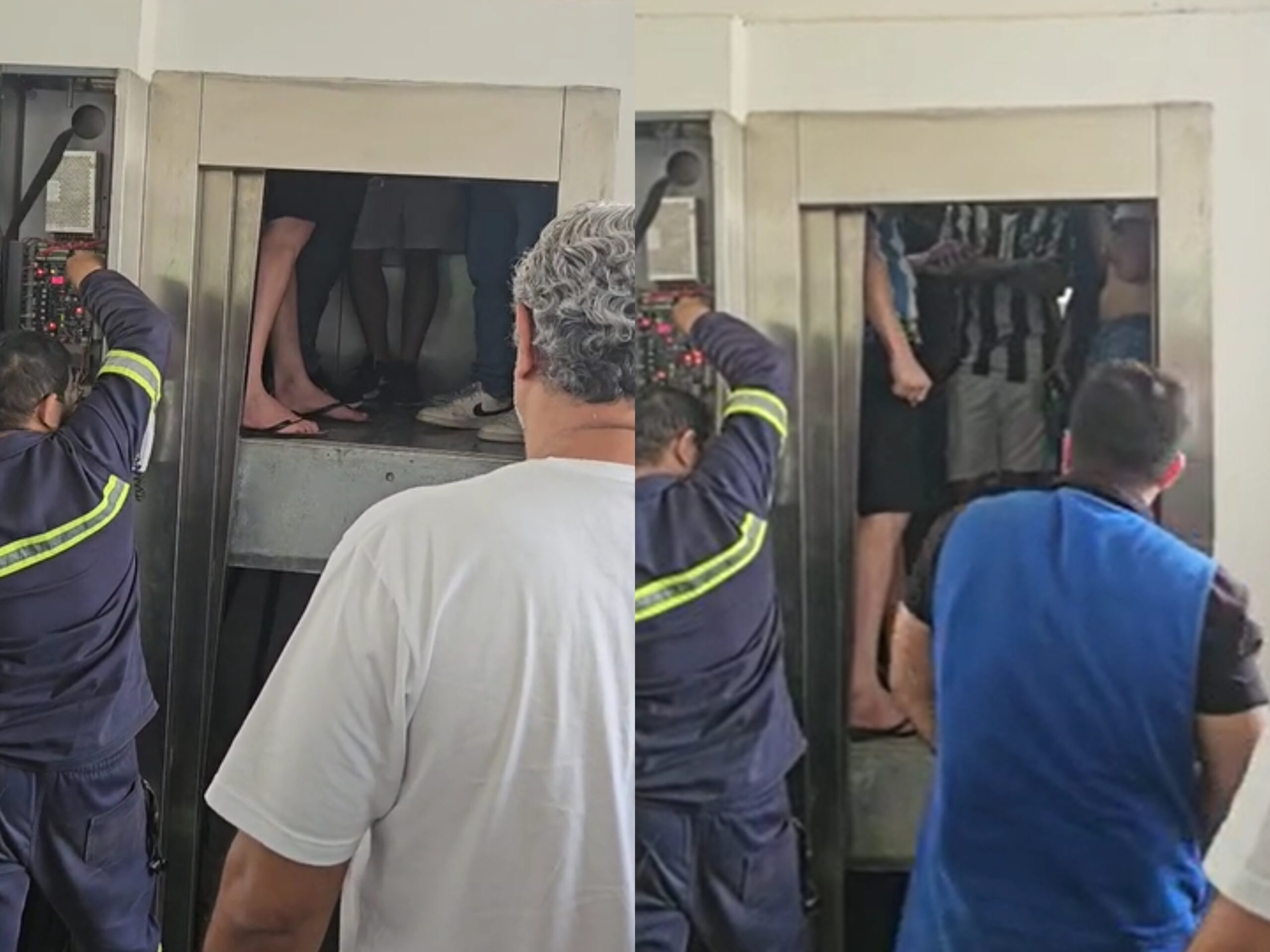 Eram cinco alunos dentro do elevador, de acordo com informações extraoficiais. O peso acumulado por conta do número de pessoas pode ter sido a causa do incidente.