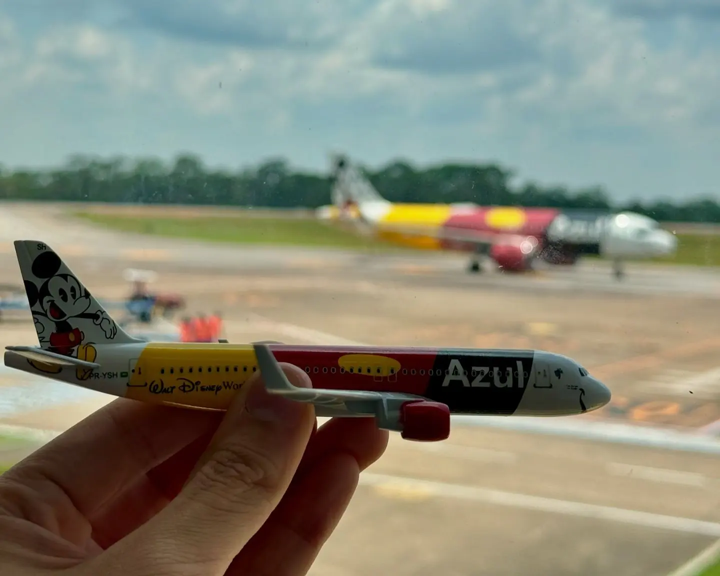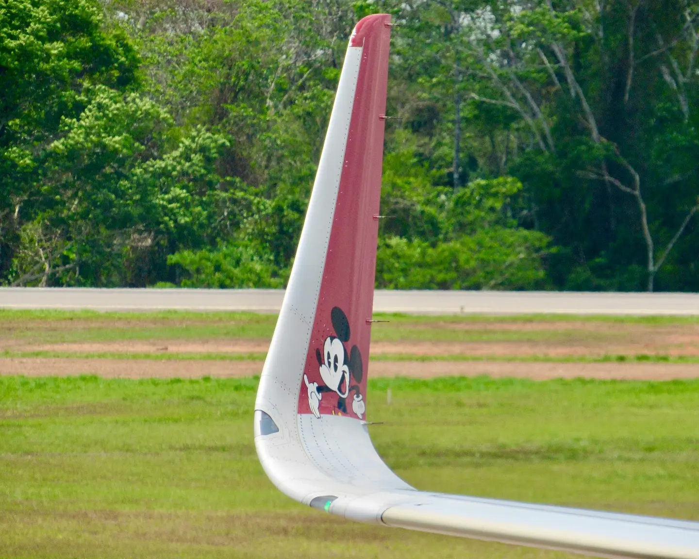 As fotos e vídeos do momento, compartilhados por Daniel Luz, mostram o avião decorado com o famoso personagem da Disney, uma ação promocional da companhia aérea em parceria com a Walt Disney World.